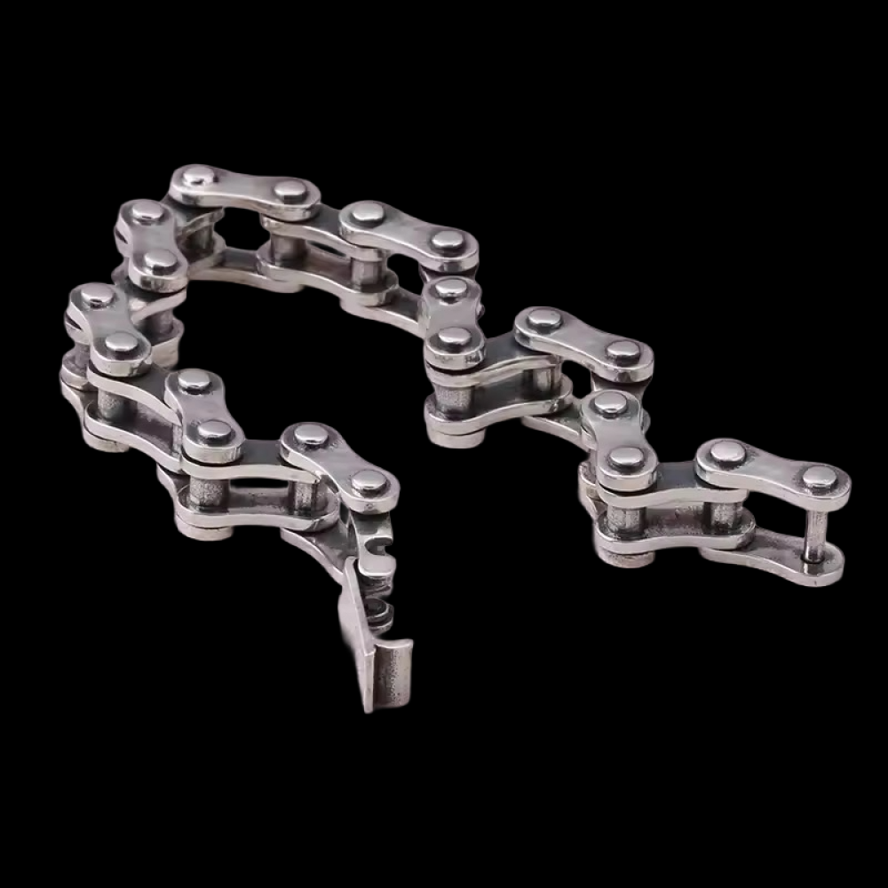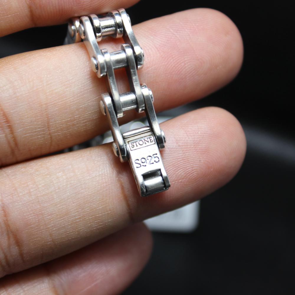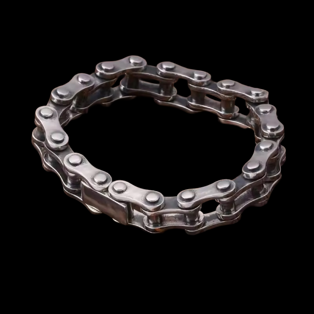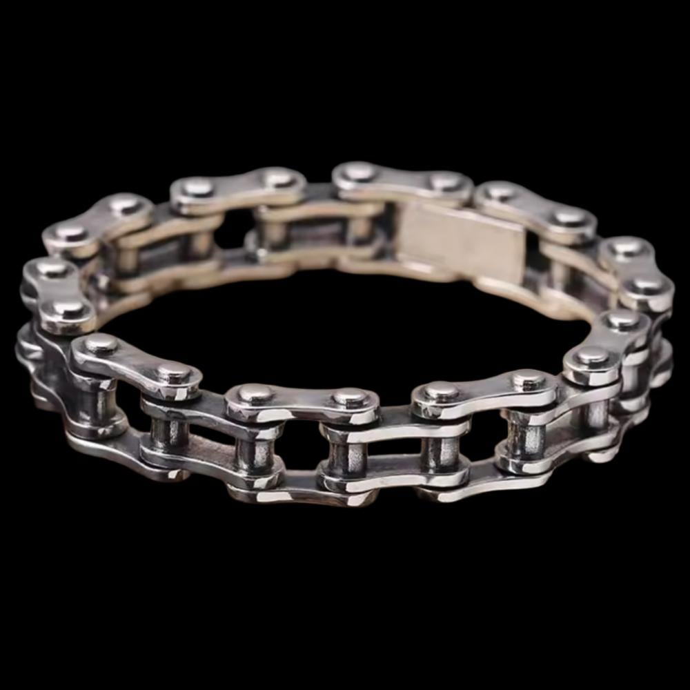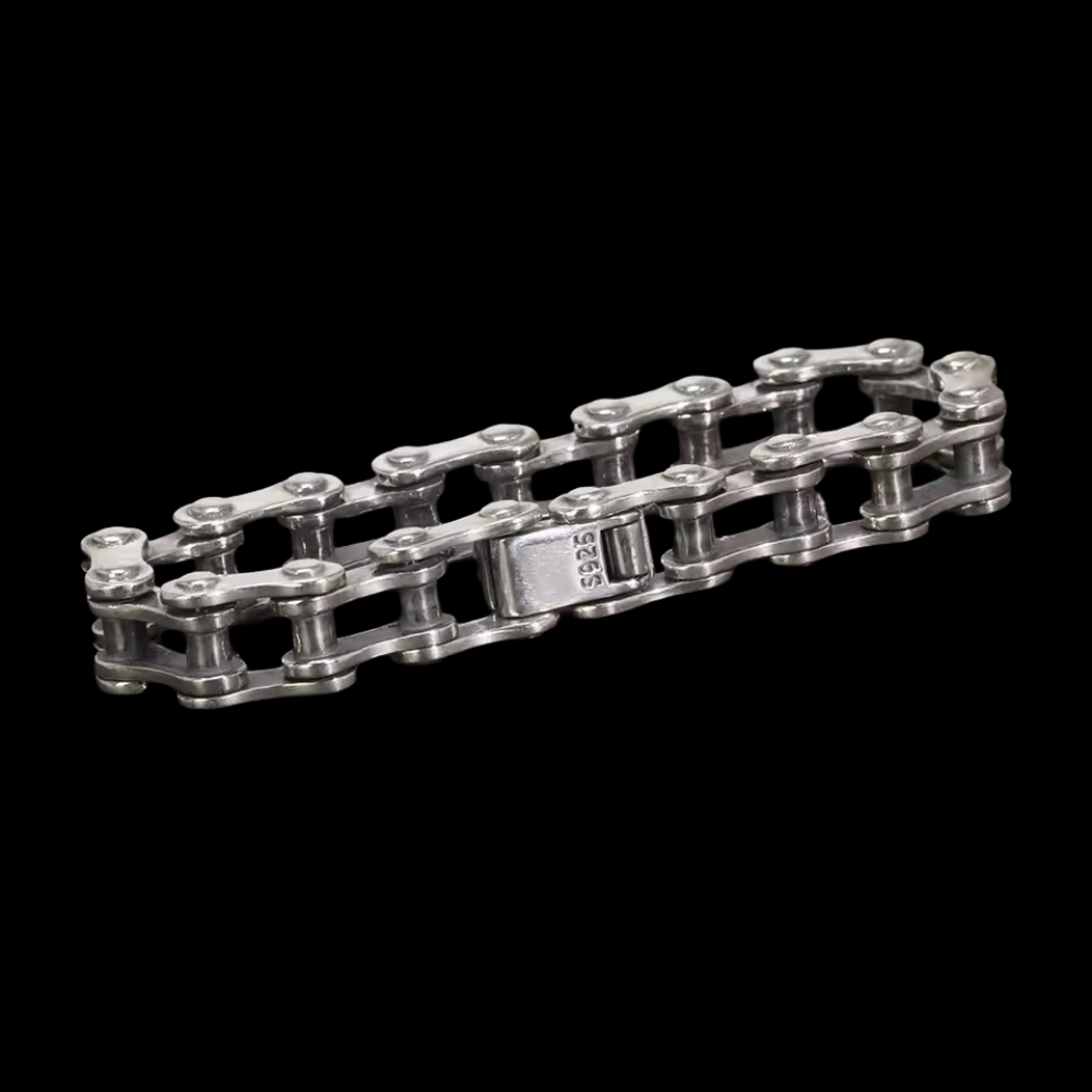 جرأة وأناقة في قطعة واحدة… سوار رجولي عصري بتصميم مستوحى من جنزير الدراجات النارية، مصنوع من الفضة الاسترلينية الأصلية عيار 925.