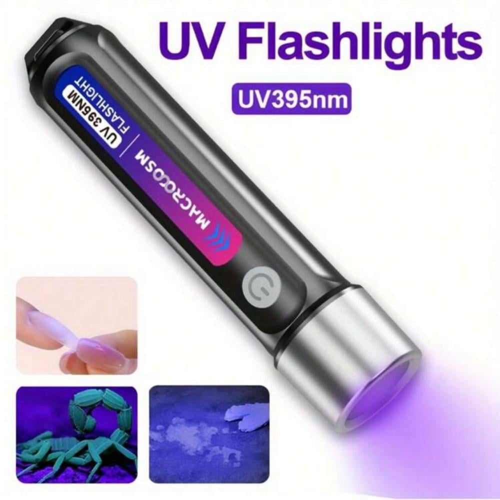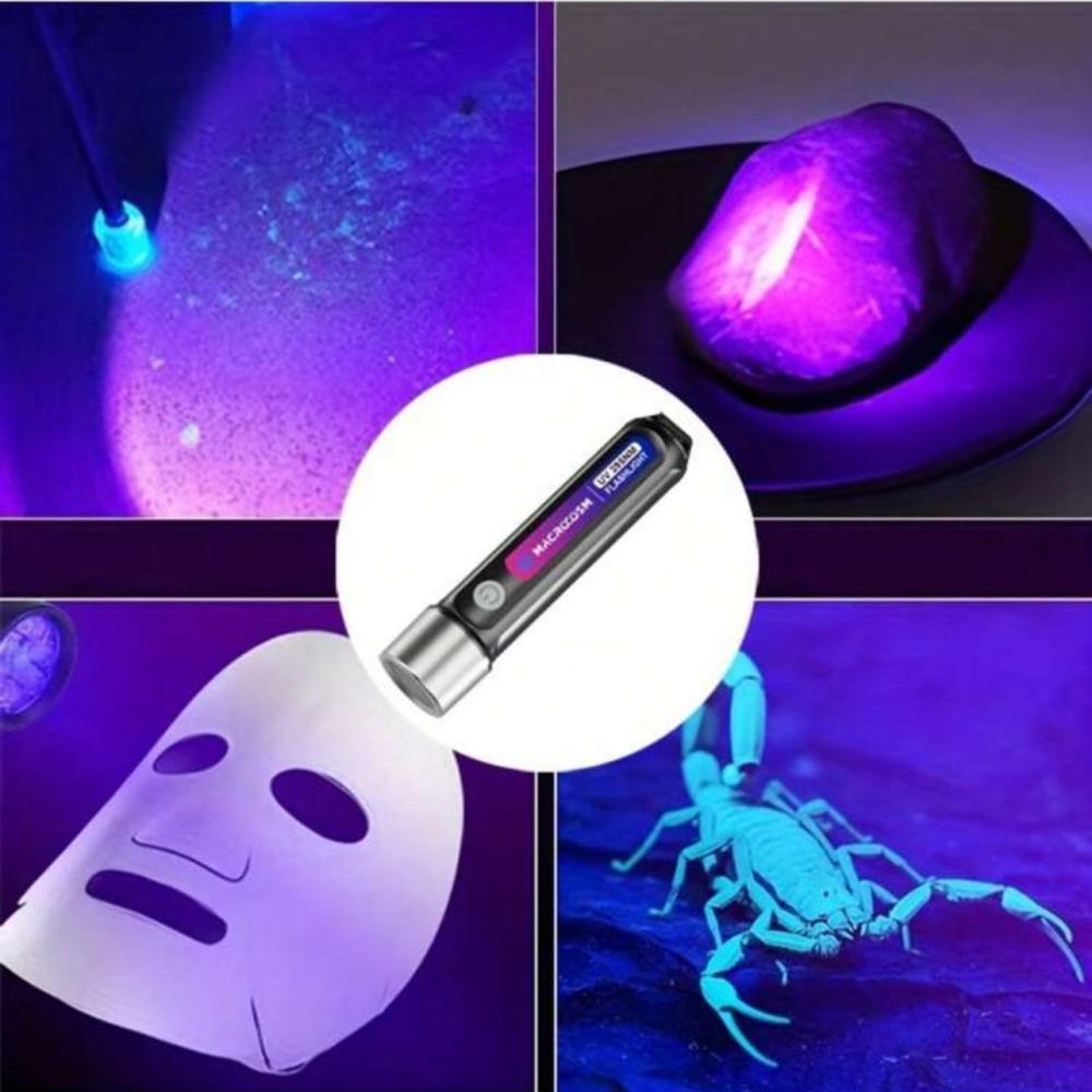 مصباح يدوي LED بالأشعة فوق البنفسجية 395 نانومتر، قابل لإعادة الشحن عبر USB، ضوء الأشعة فوق البنفسجية محمول لفحص الكهرمان والأحجار الكريمة يأتي مع بطارية ليثيوم، سعة البطارية 1200 مللي أمبير/ساعة
