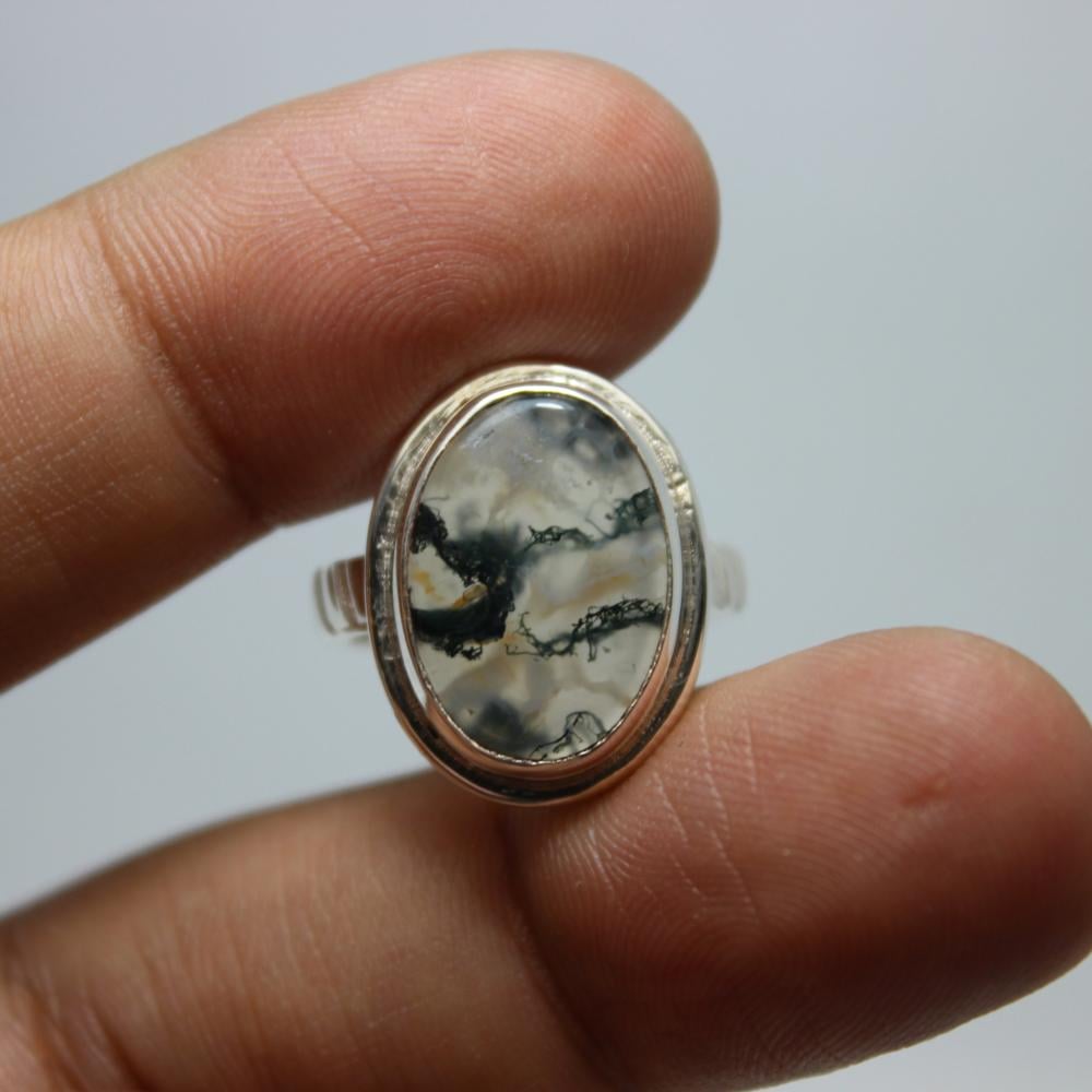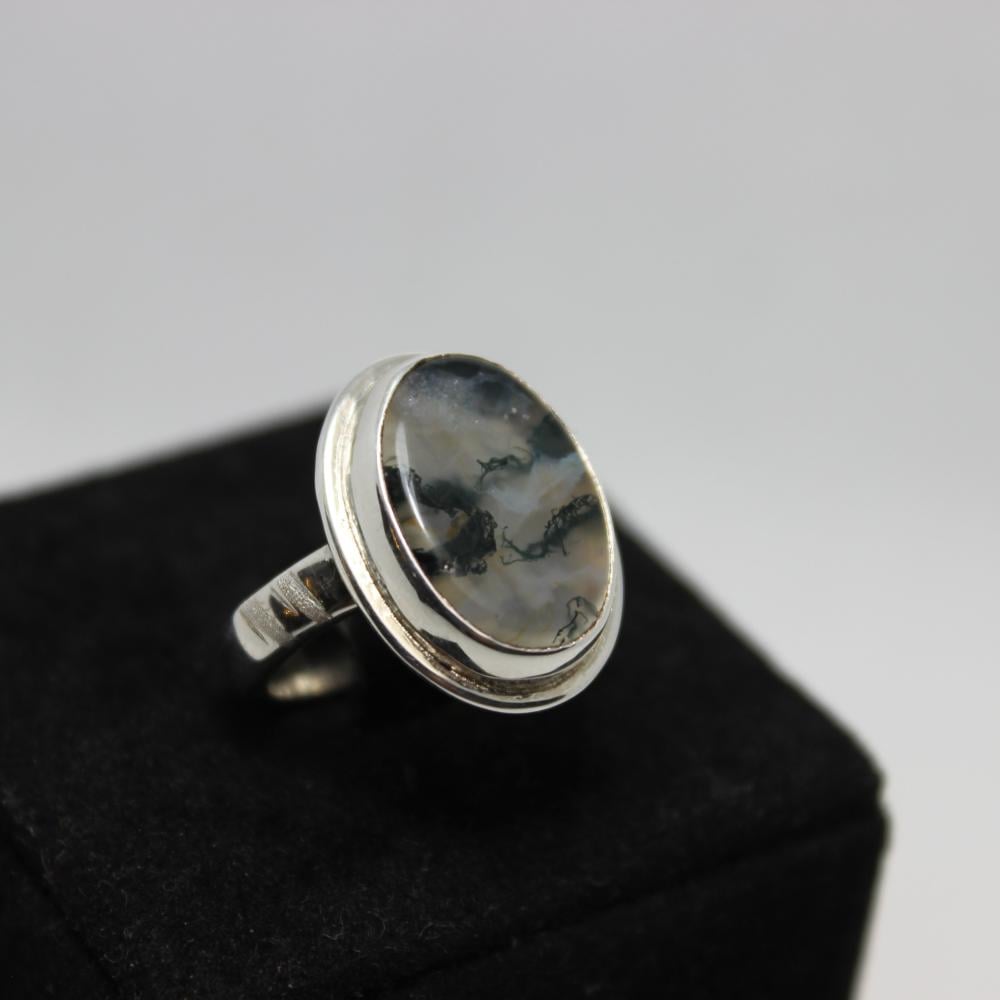 حجر العقيق الطحلبي الطبيعي، صياغة نسائية فضة عيار 925.