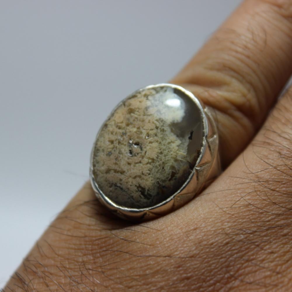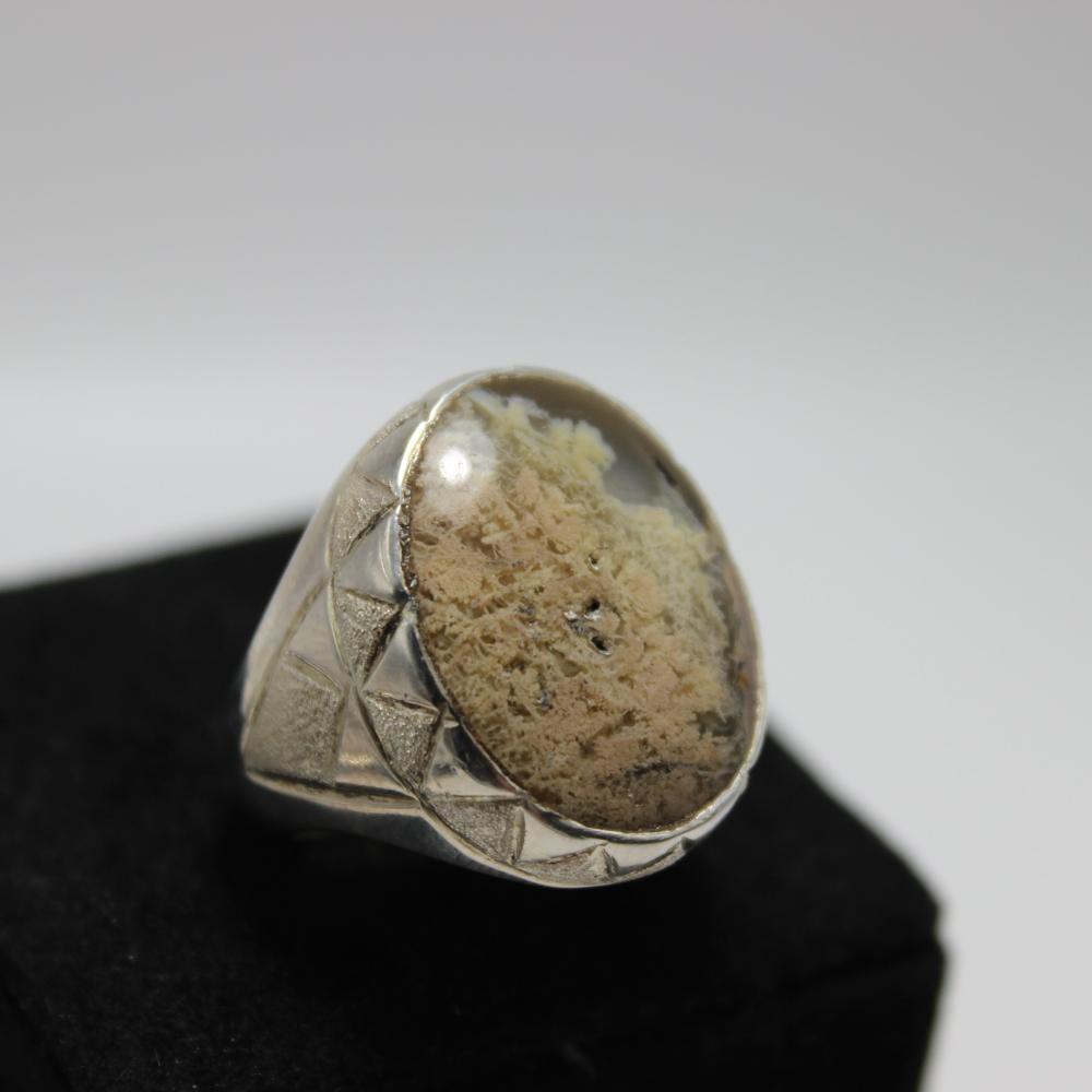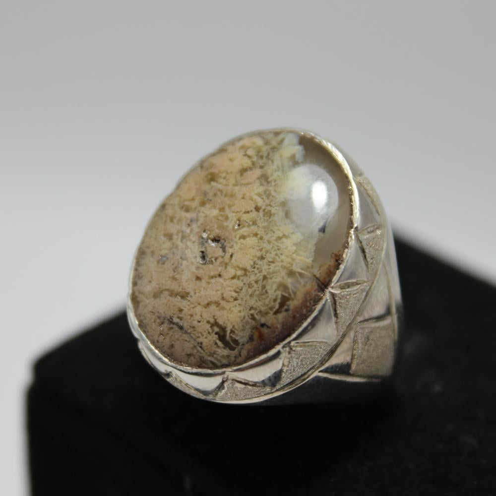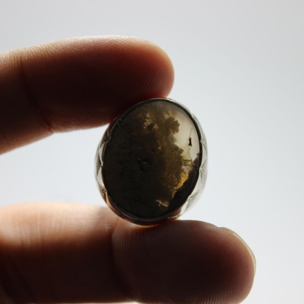 عقيق يماني طحلبي طبيعي، صياغة اسطنبولية فضة عيار 925.