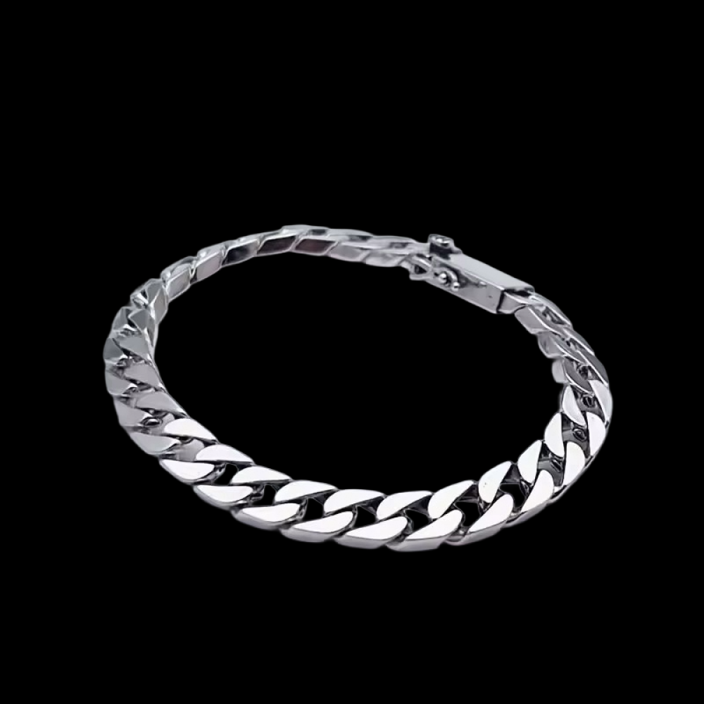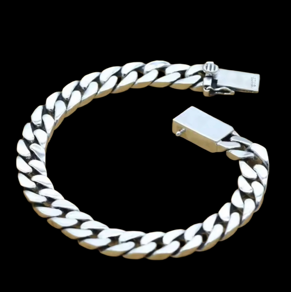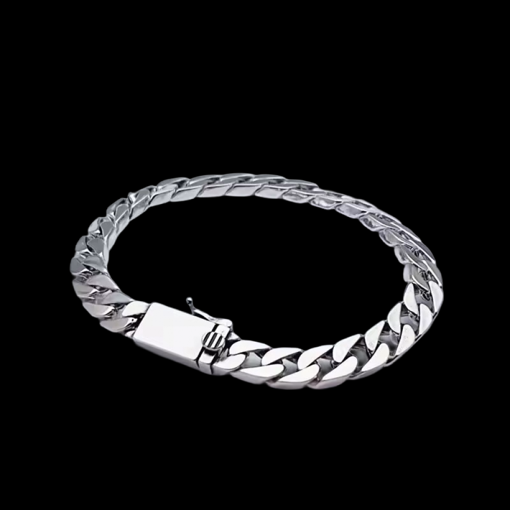 جرأة وأناقة في قطعة واحدة… سوار رجولي عصري بتصميم مستوحى من الباجيت الكوبي، مصنوع من الفضة الاسترلينية الأصلية عيار 925.