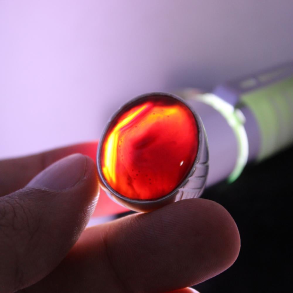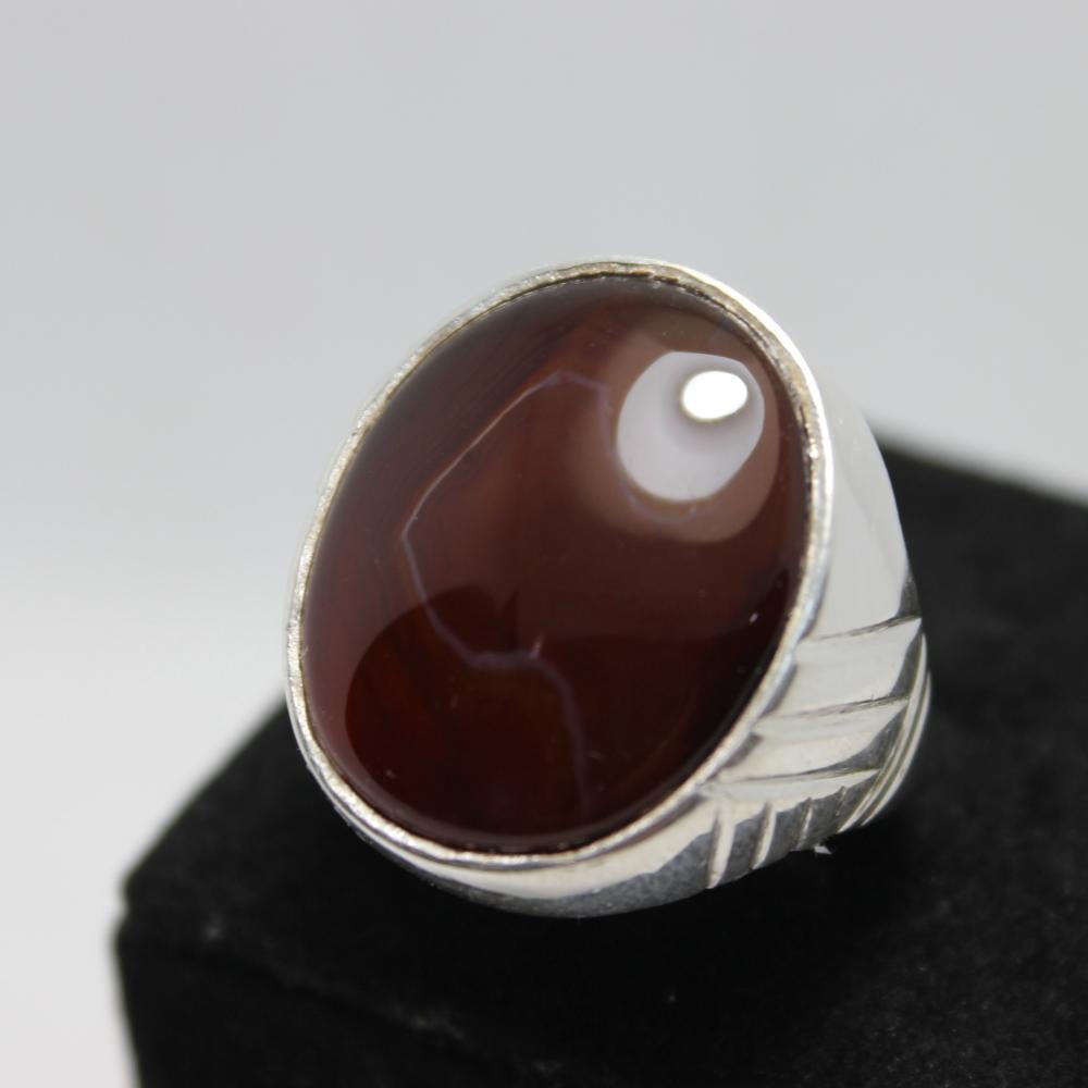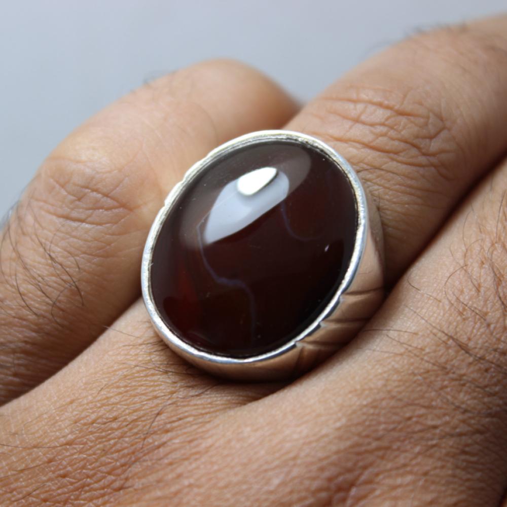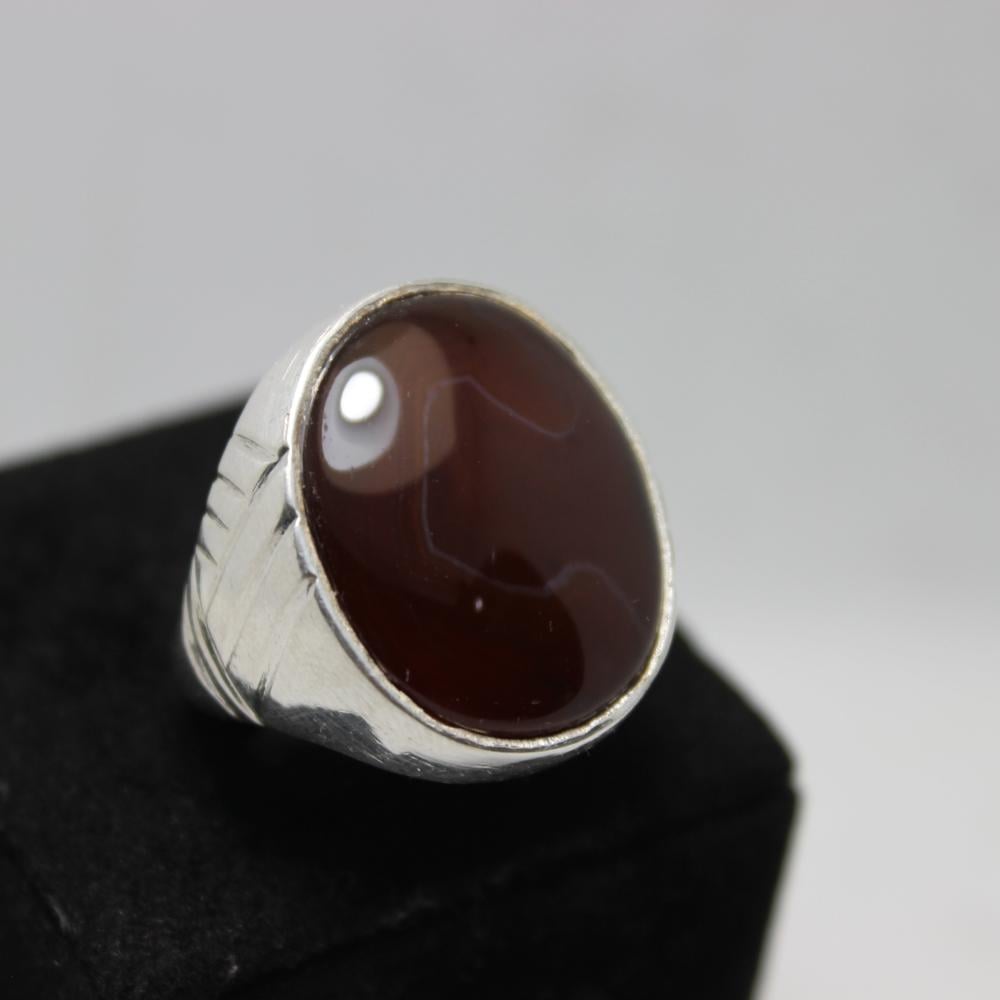 عقيق كرزي يماني مزعفر طبيعي، صياغة فضة ثقيلة عيار 925 .