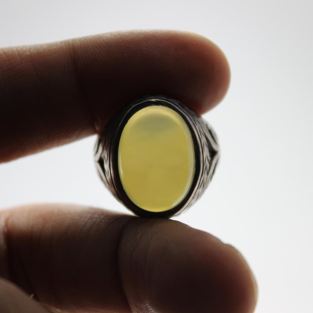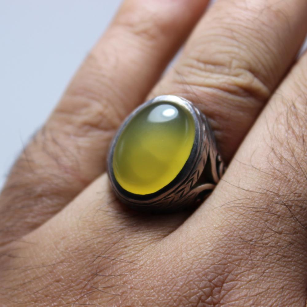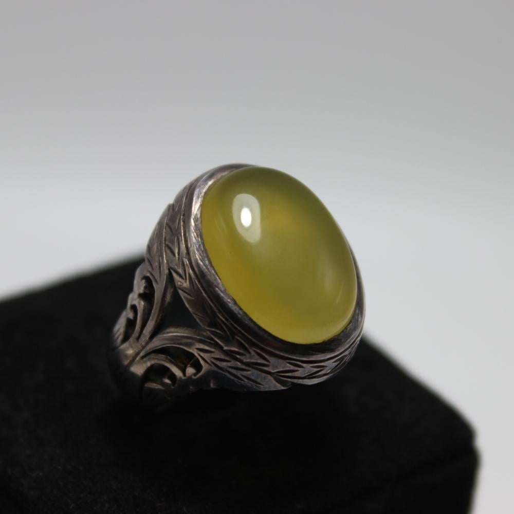 عقيق اصفر (شرف الشمس) طبيعي، صياغة منشار فضة ثقيلة عيار 925.