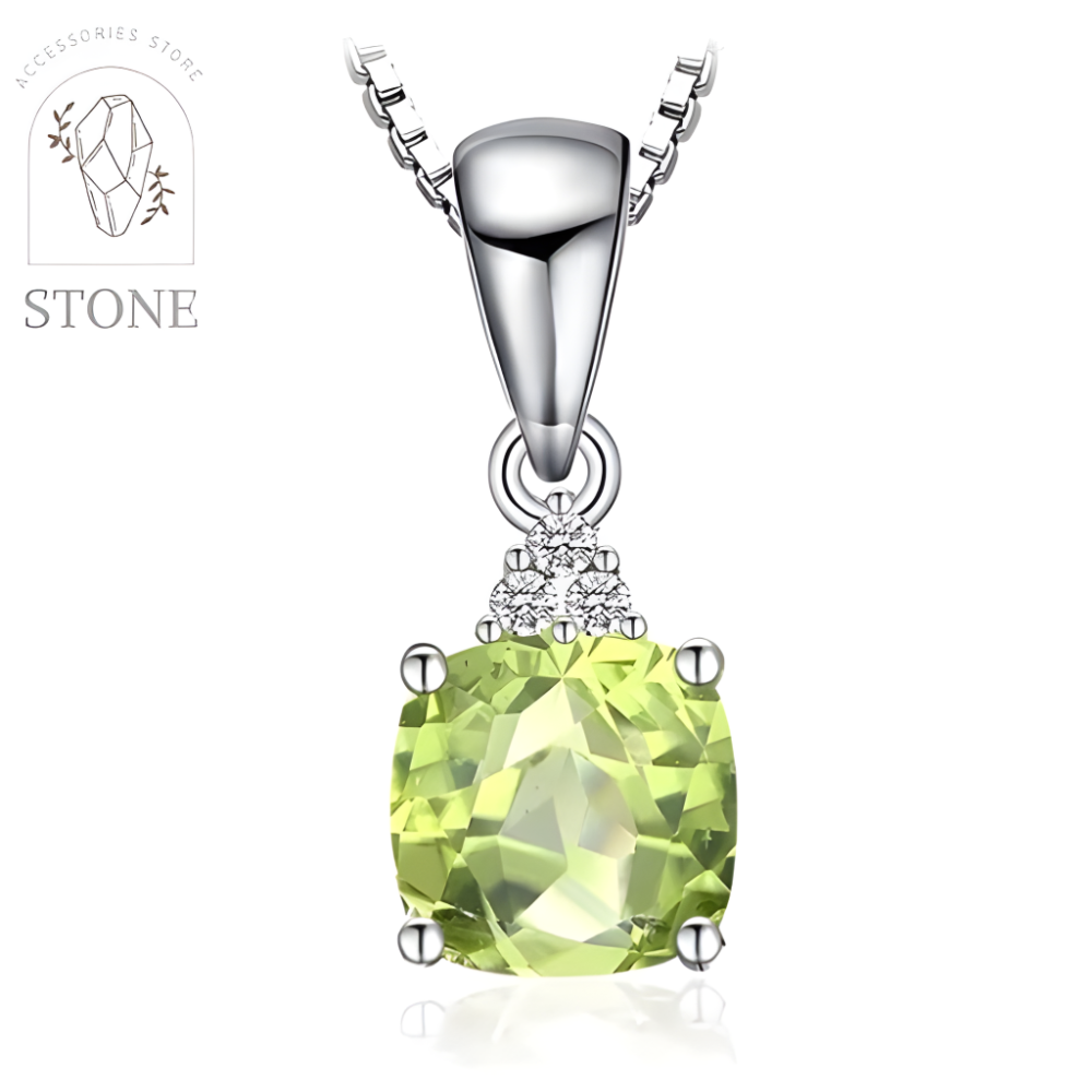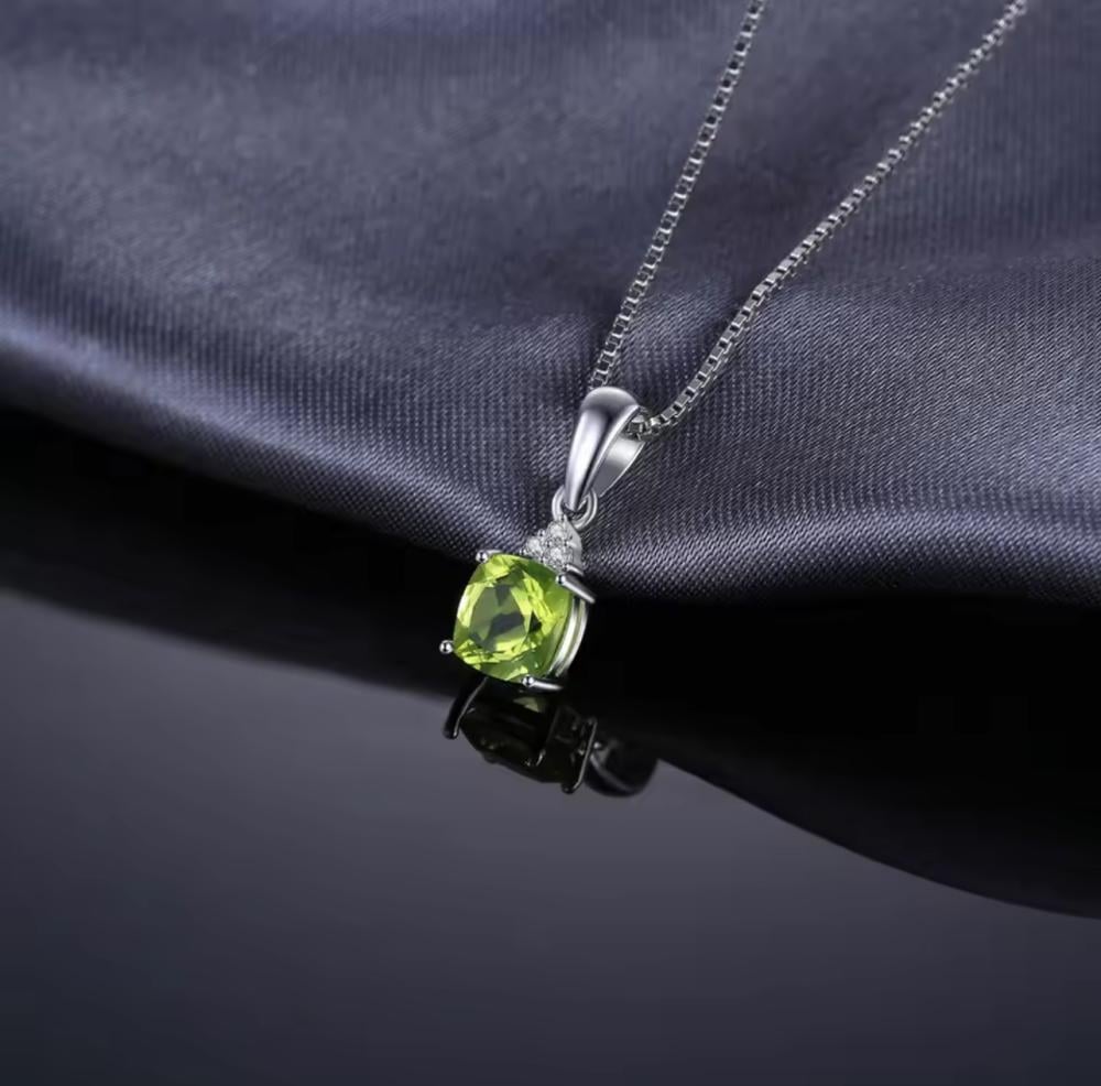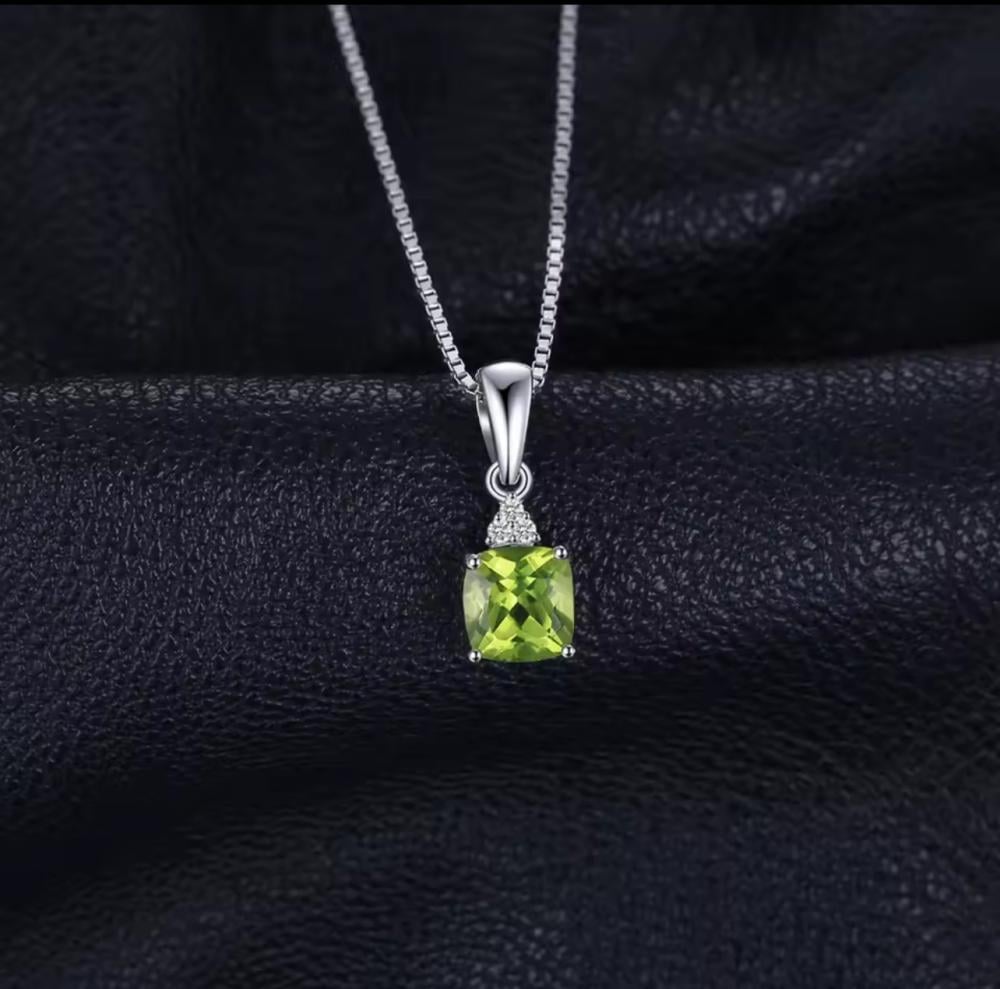 قلادة من الفضة مطعمه بحجر الزبرجد الطبيعي مطعمه بالزركون
