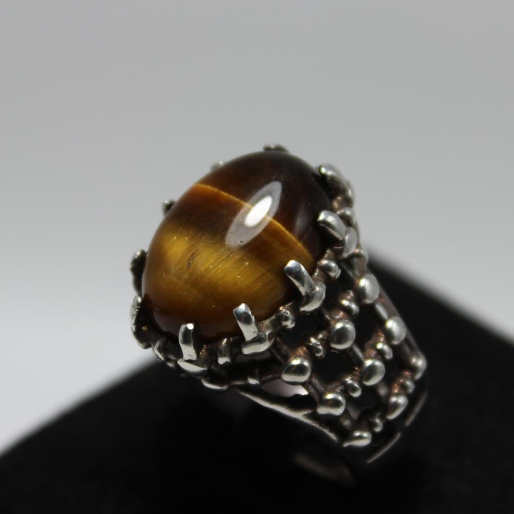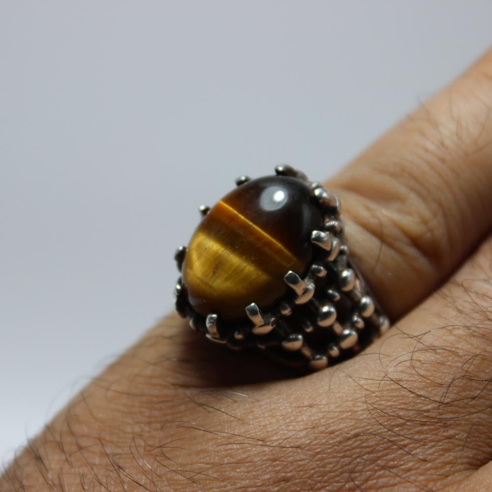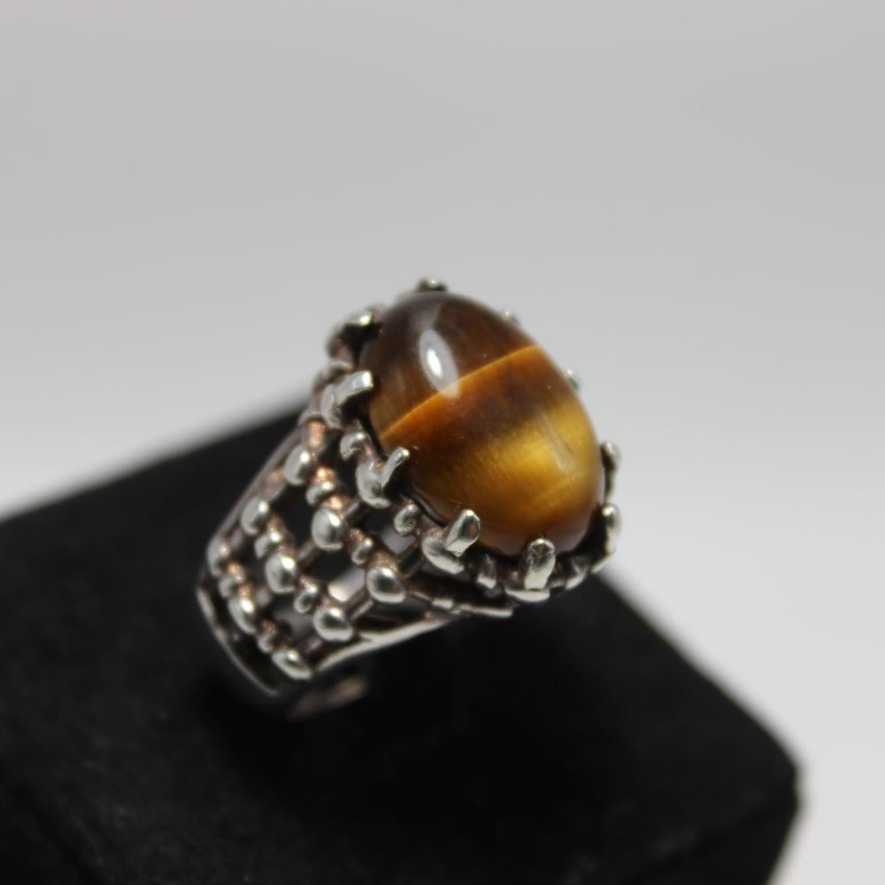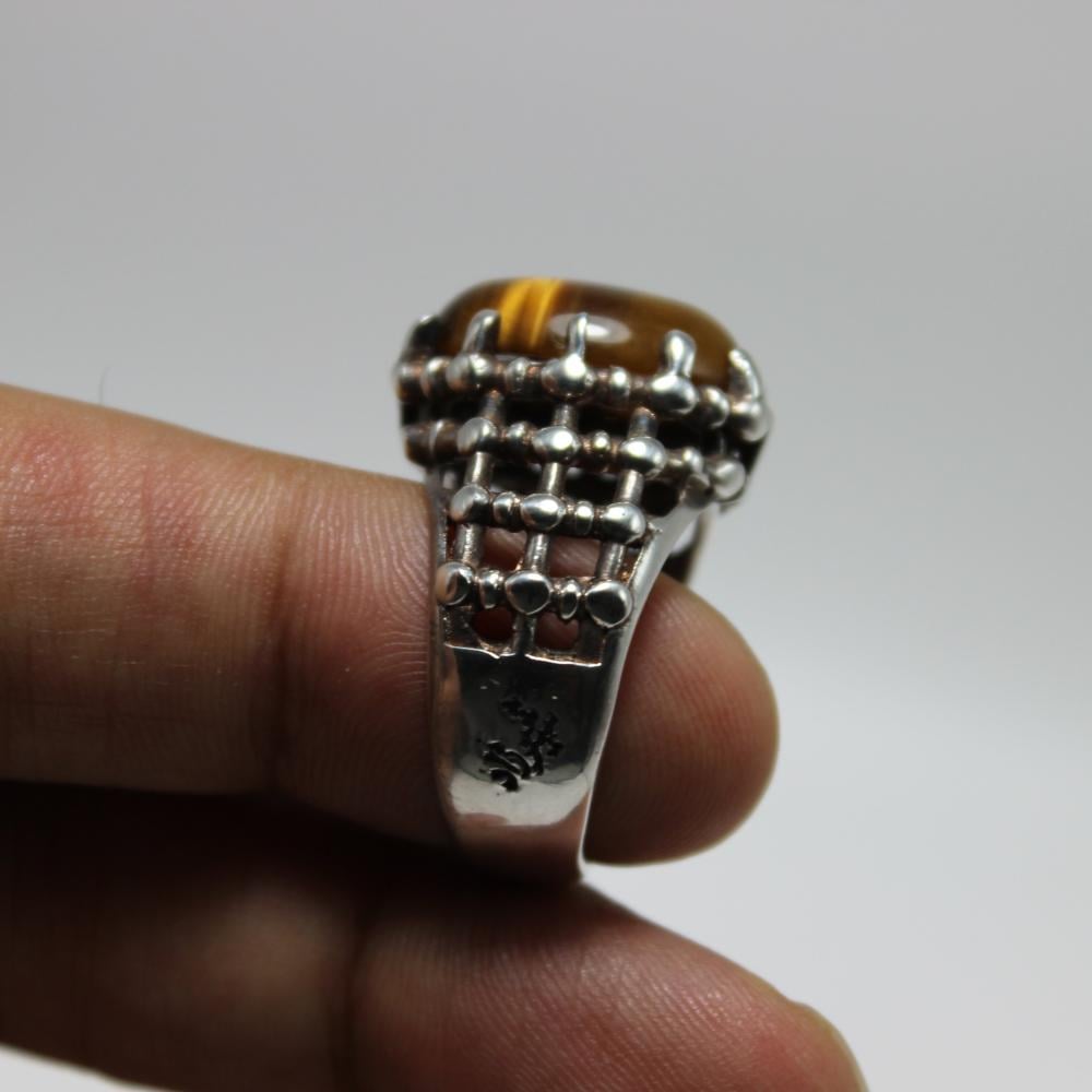 حجر عين النمر طبيعي خامه وفاير مميز ، صياغة ورشة شيرزاد فضة ثقيلة عيار 980 مختومه.