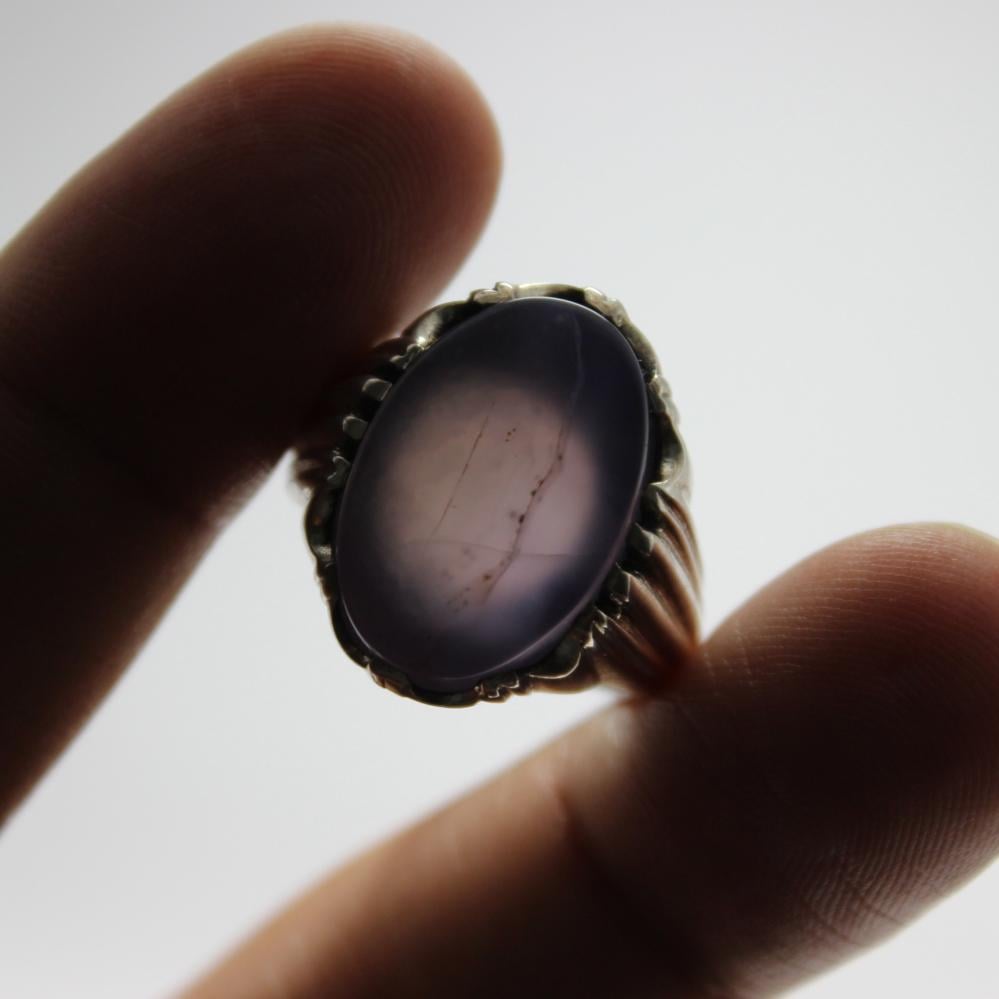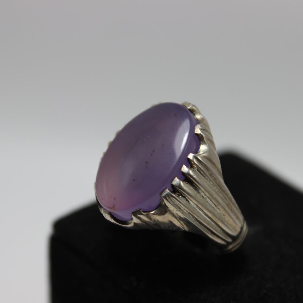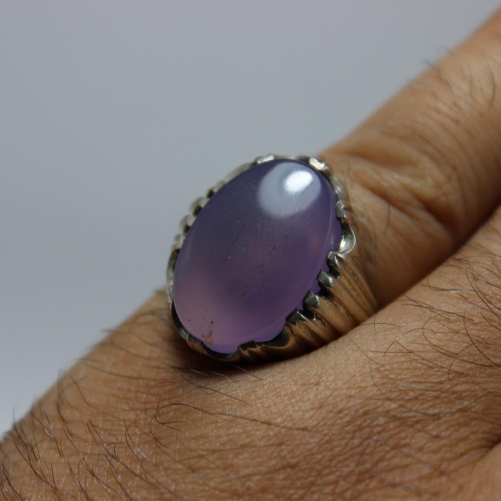 عقيق يماني بنفسجي طبيعي خامه مميزه بعرق زعفران، صياغة فضة ثقيلة عيار 925.