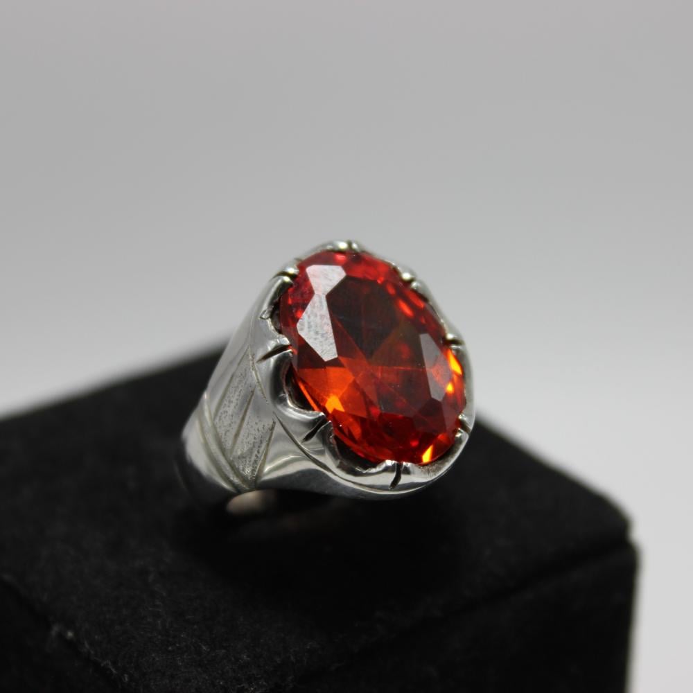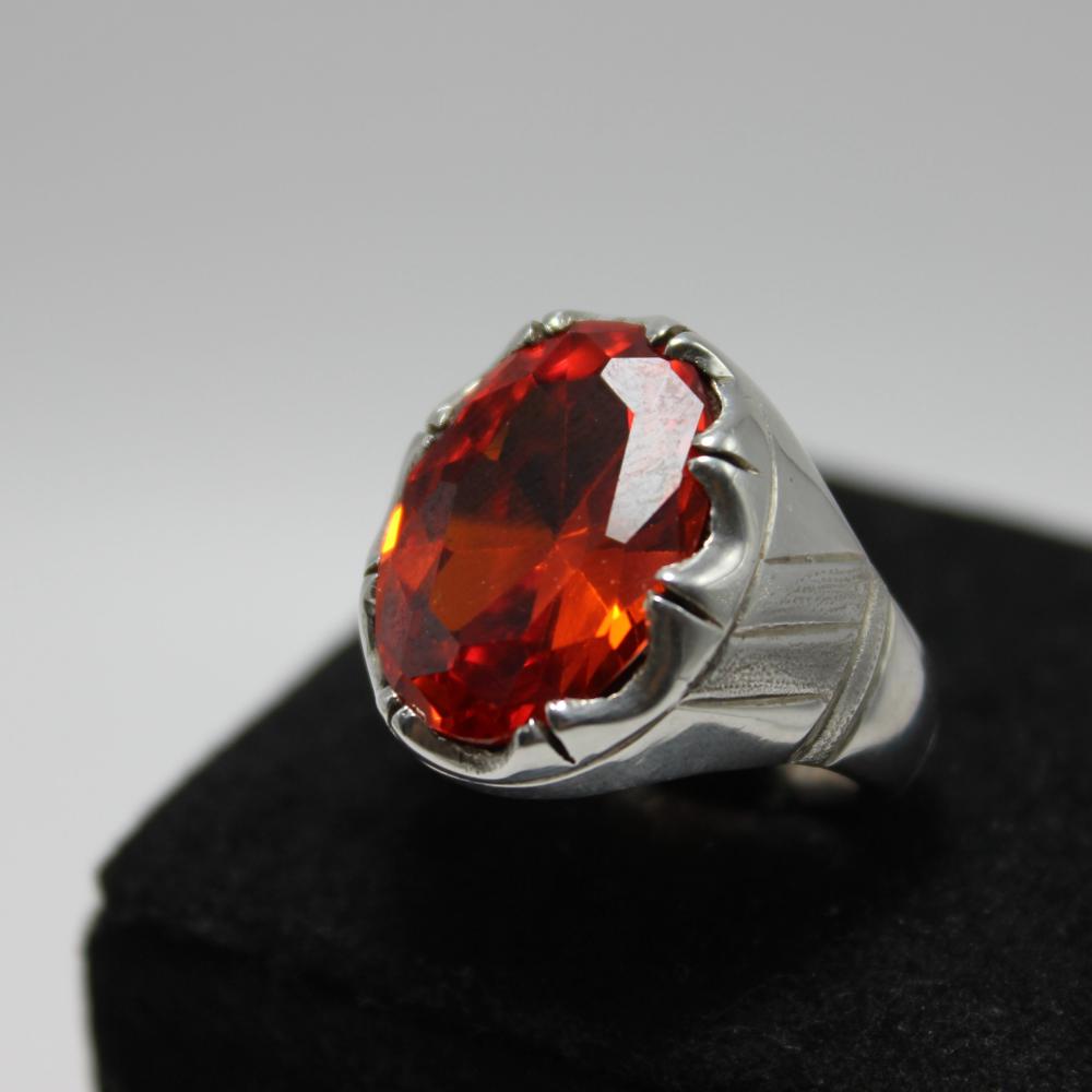 خاتم زركون أحمر صياغة فضة ثقيلة عيار 925.