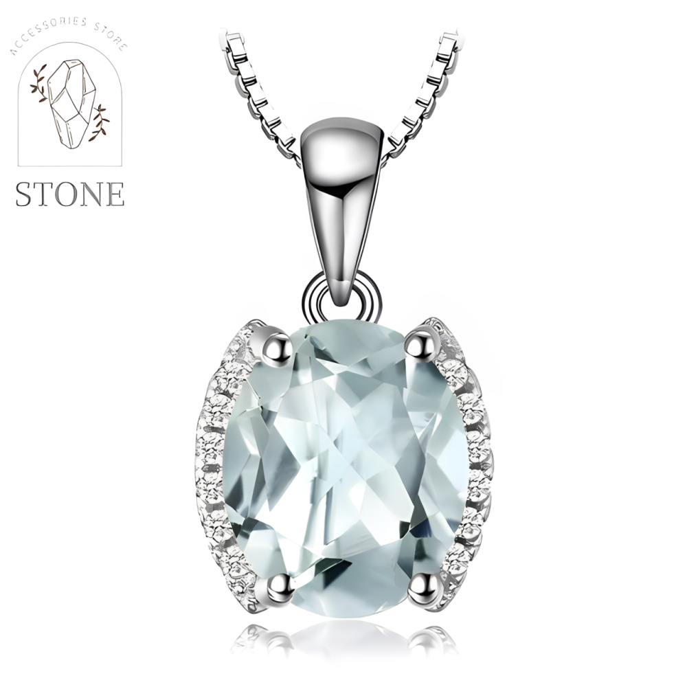 قلادة من الفضة مطعمه بحجر الأمثيست الأخضر (النادر) الطبيعي مطعمه بالزركون