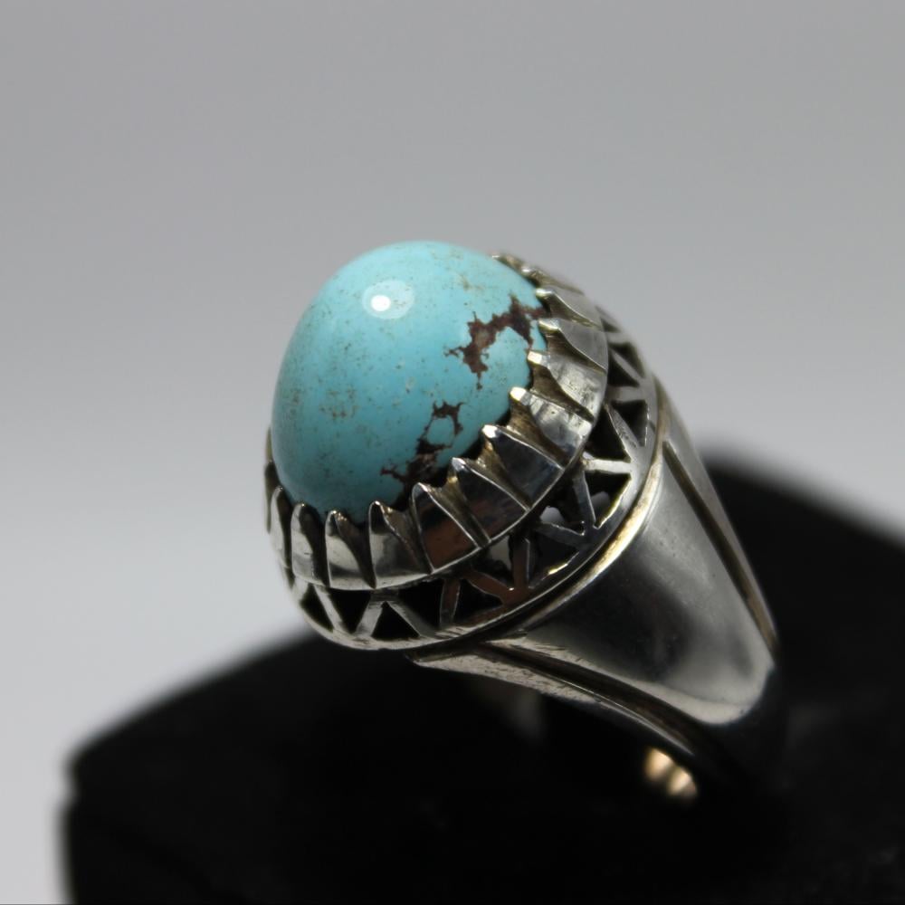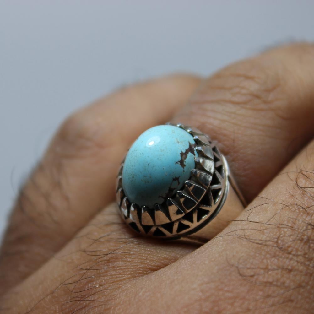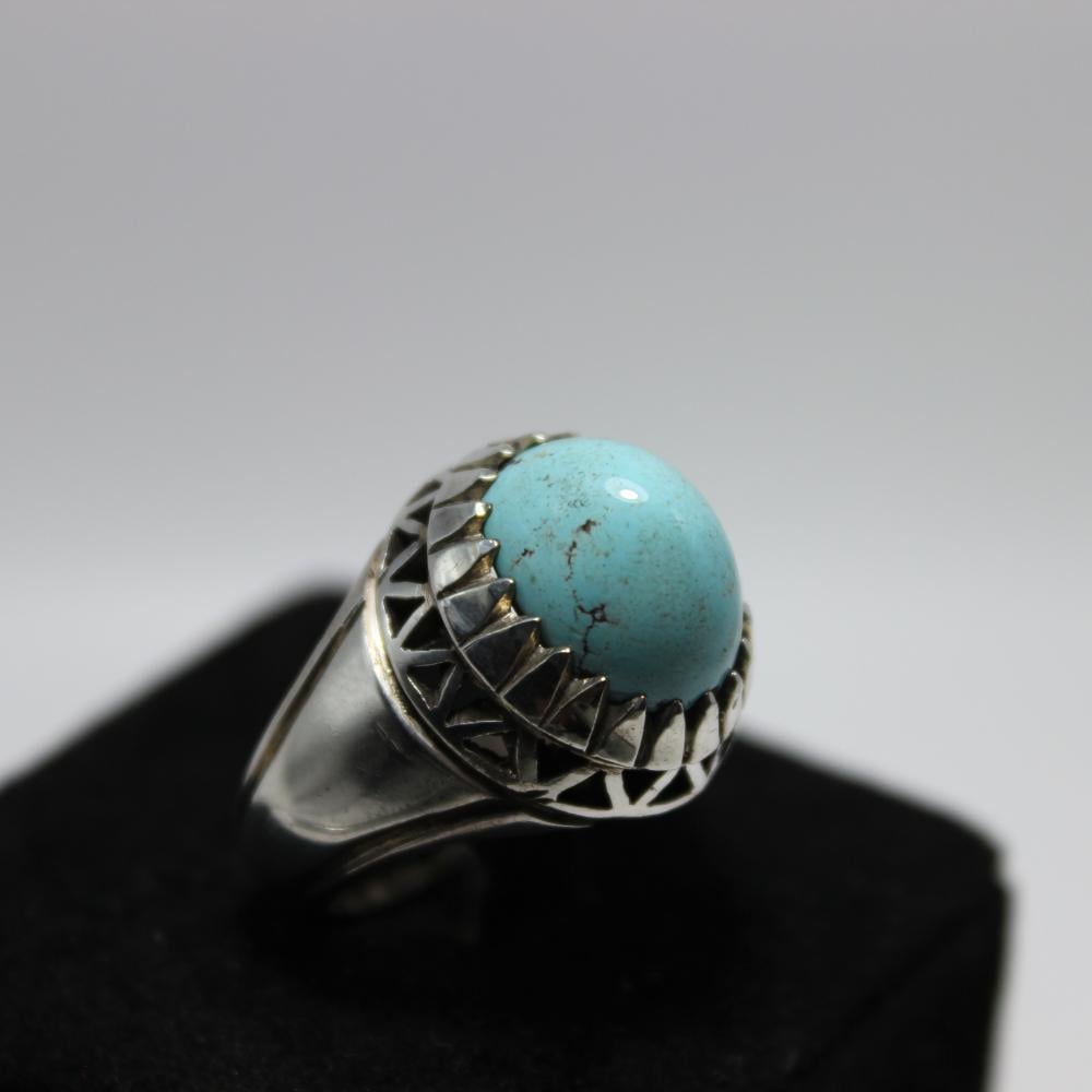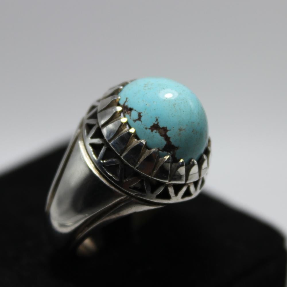 فيروز نيشابوري طبيعي، صياغة شاكري فضة ثقيلة عيار 925 .مختومه