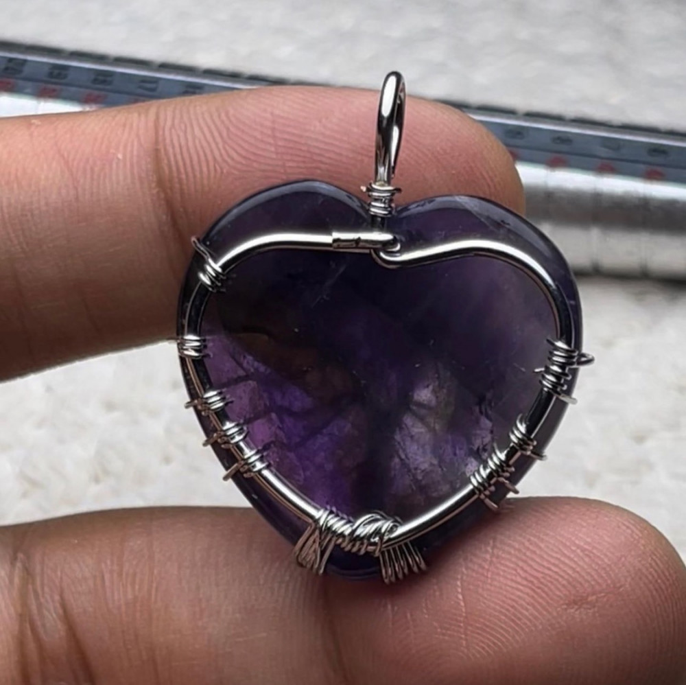 قلادة من حجر الجمشت الطبيعي شغل يدوي شكل قلب 💜