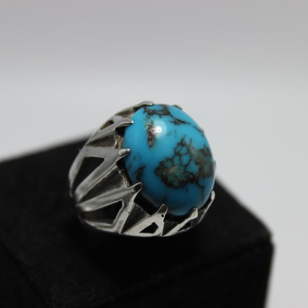 فيروز سينائي شبكي طبيعي مميز، صياغة فضة عيار 925 .