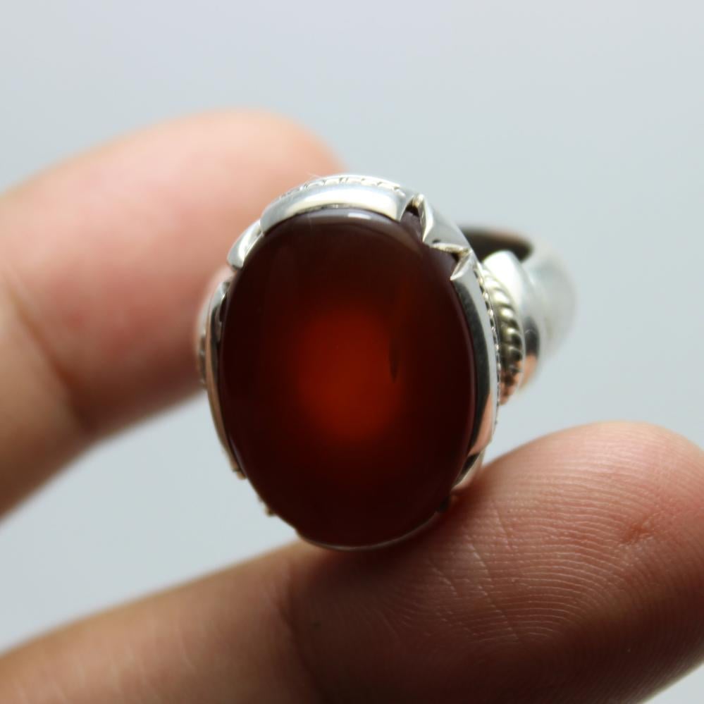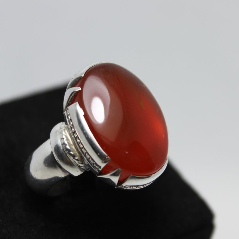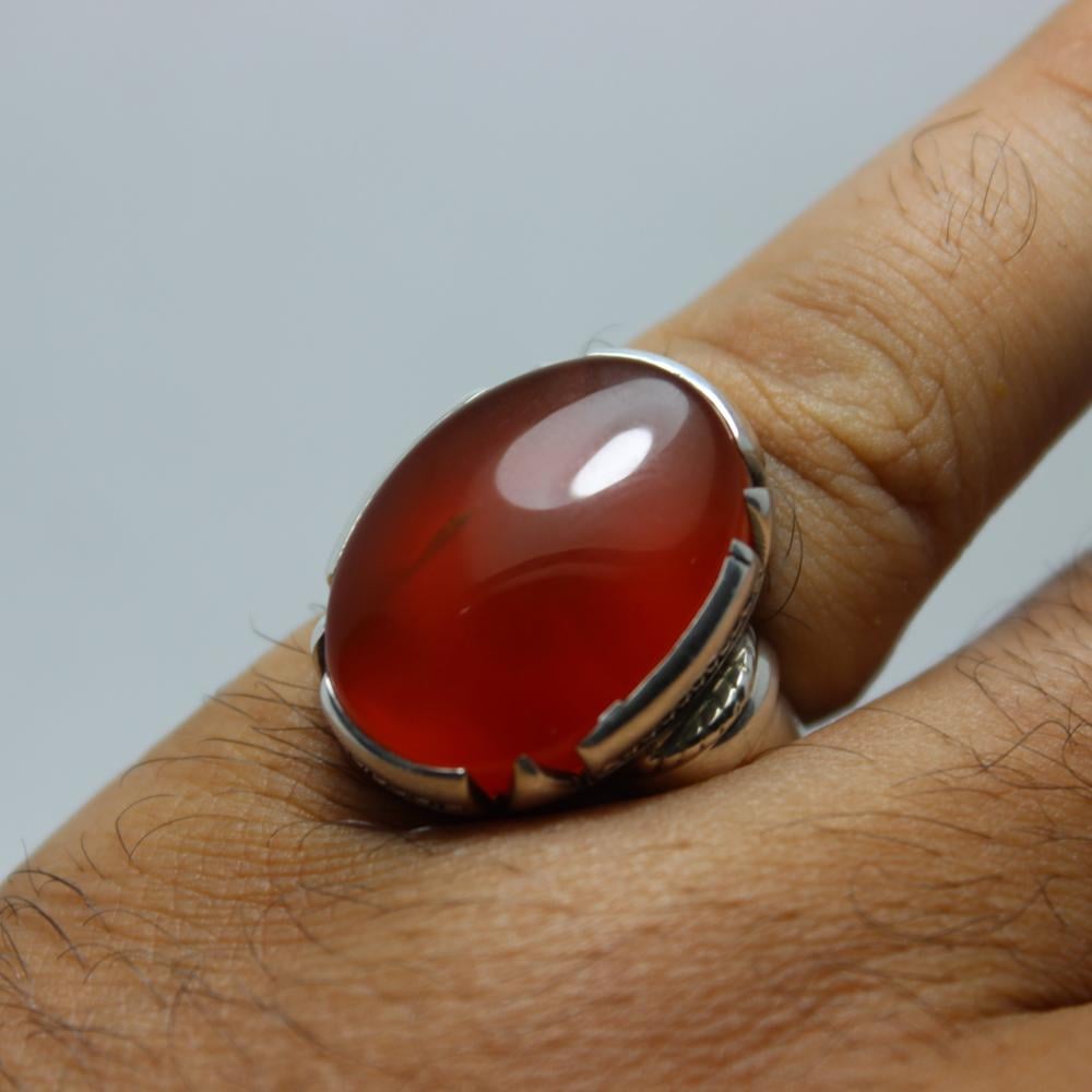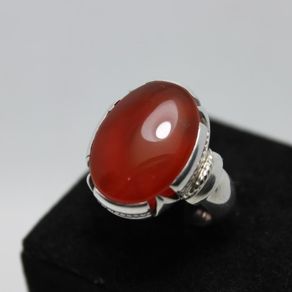 عقيق يماني أحمر رماني طبيعي، صياغة فضة ثقيلة عيار 925.