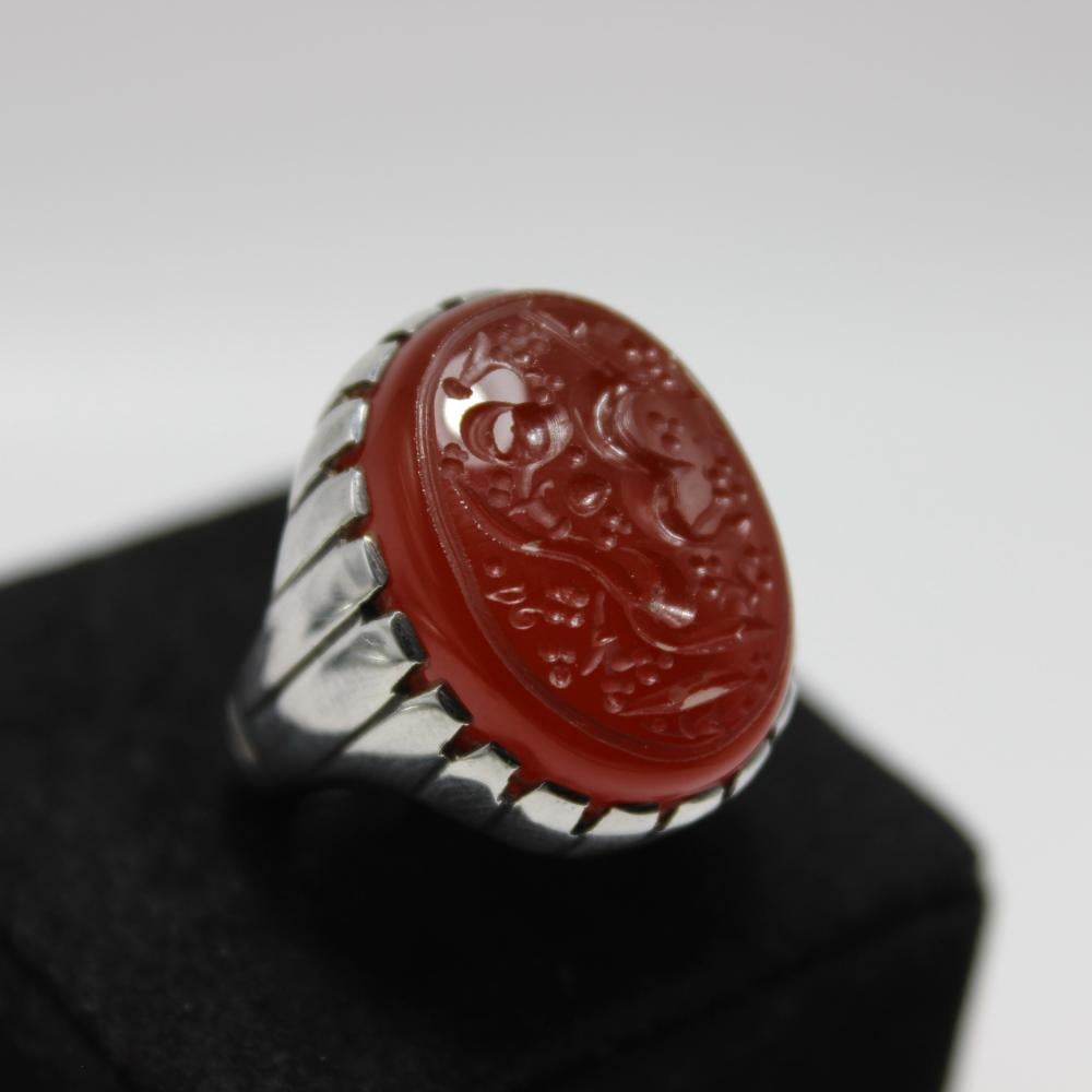 عقيق مشهدين أحمر خامة مميزه مائية وزجاجية عالية