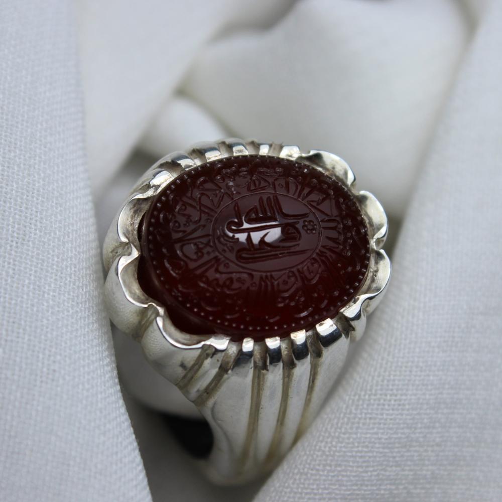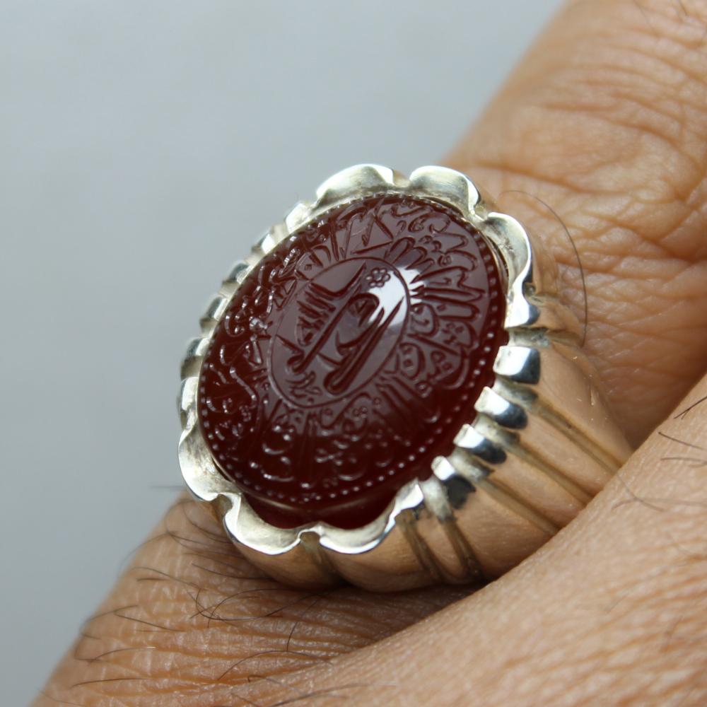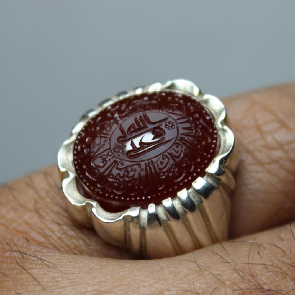 عقيق يماني احمر ياقوتي خامة توب التوب مائية وزجاجية عالية معرقه بالزعفران،