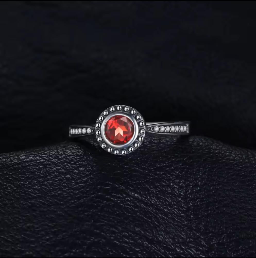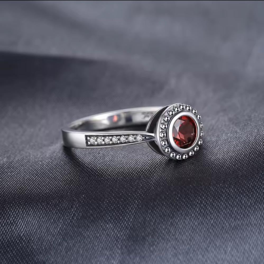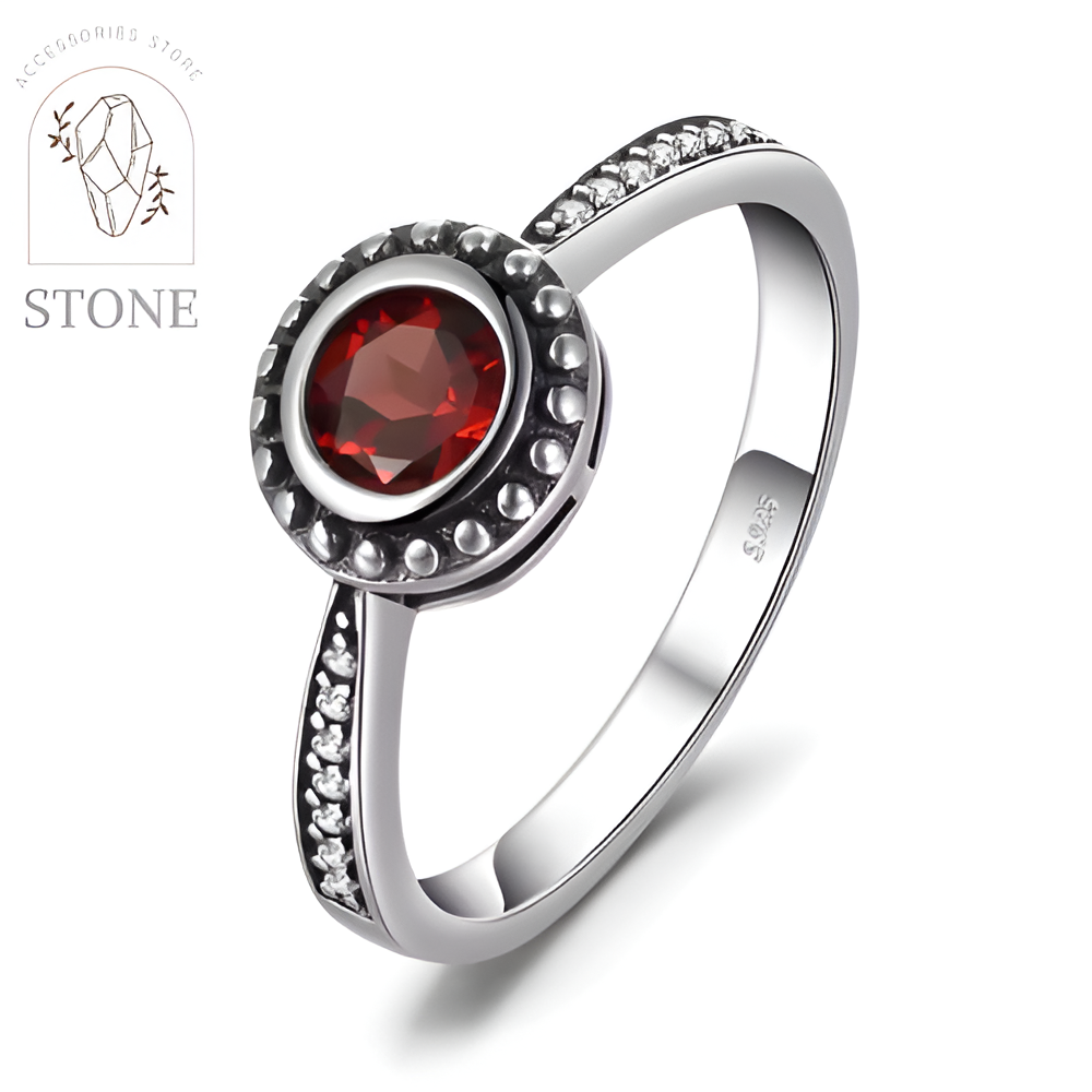 خاتم من الفضة مطعم بحجر القارنيت الطبيعي