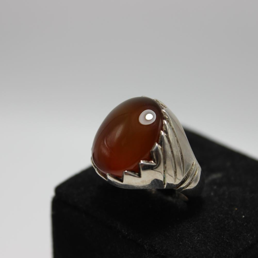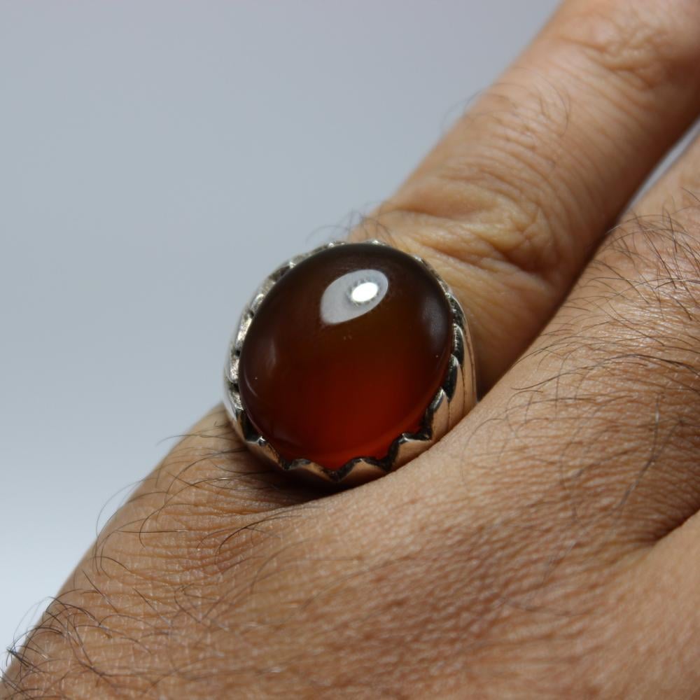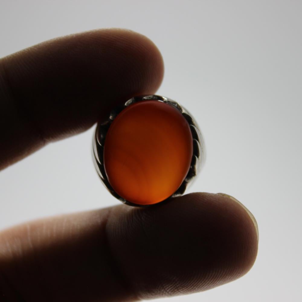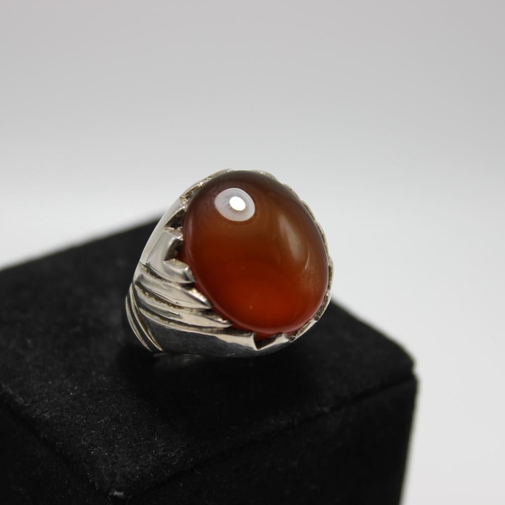 عقيق يماني برتقالي مشمشي طبيعي، صياغة فضة ثقيلة عيار 925.