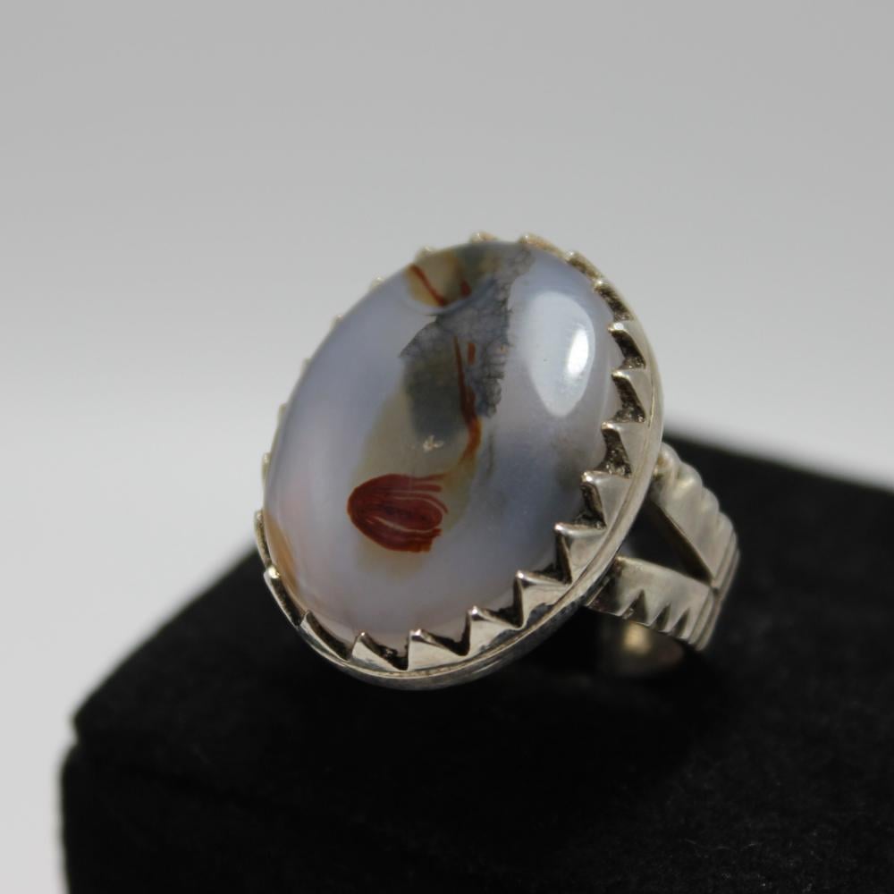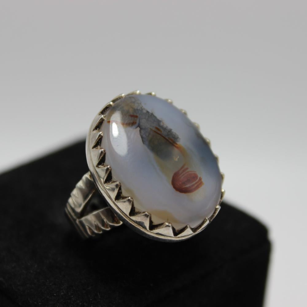 عقيق يماني مصور مميز طبيعي، صياغة فضة عيار 925.