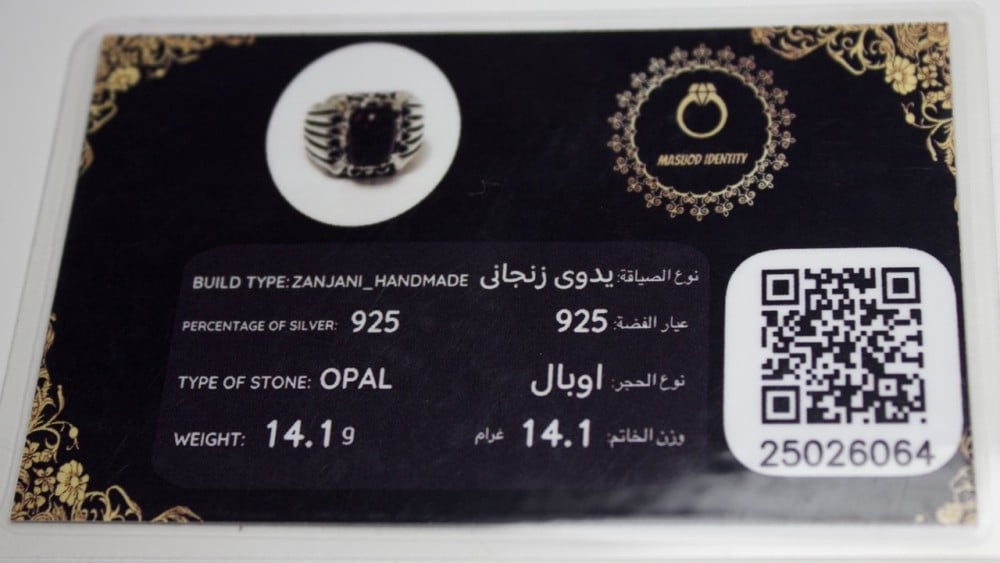 صياغة زنجان يدوية بالكامل موثقه بشهادة للخاتم.