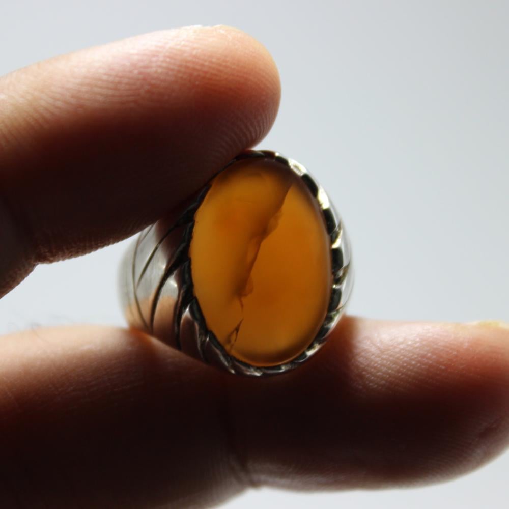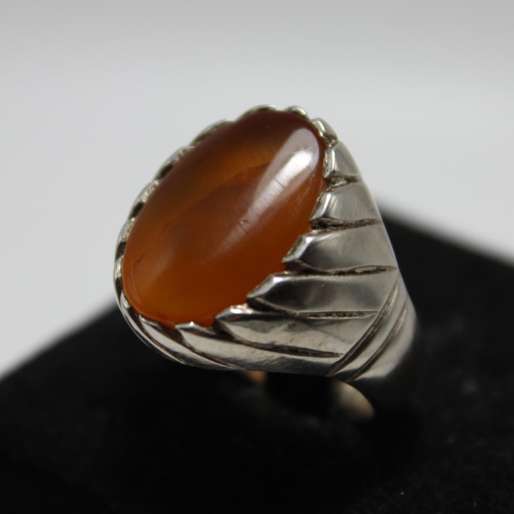 عقيق يماني برتقالي مشمشي طبيعي، صياغة فضة ثقيلة عيار 925.