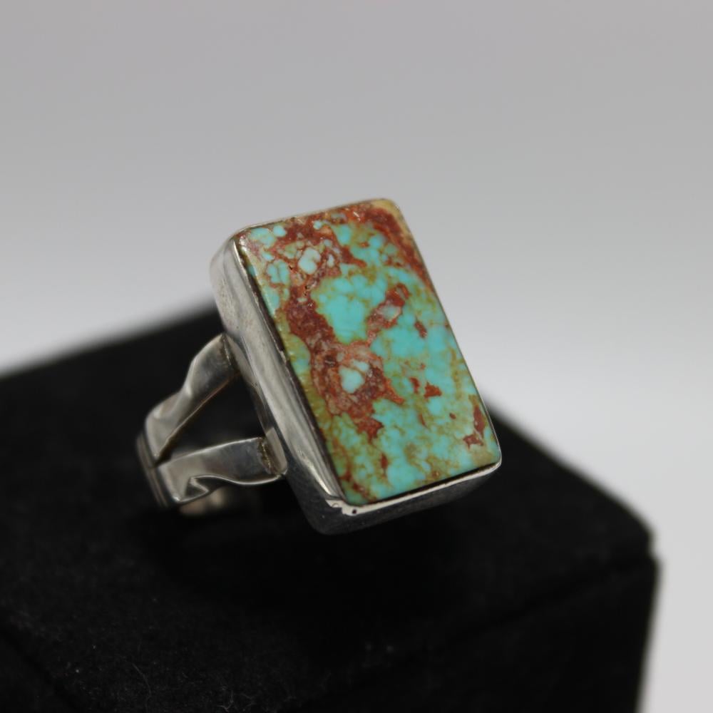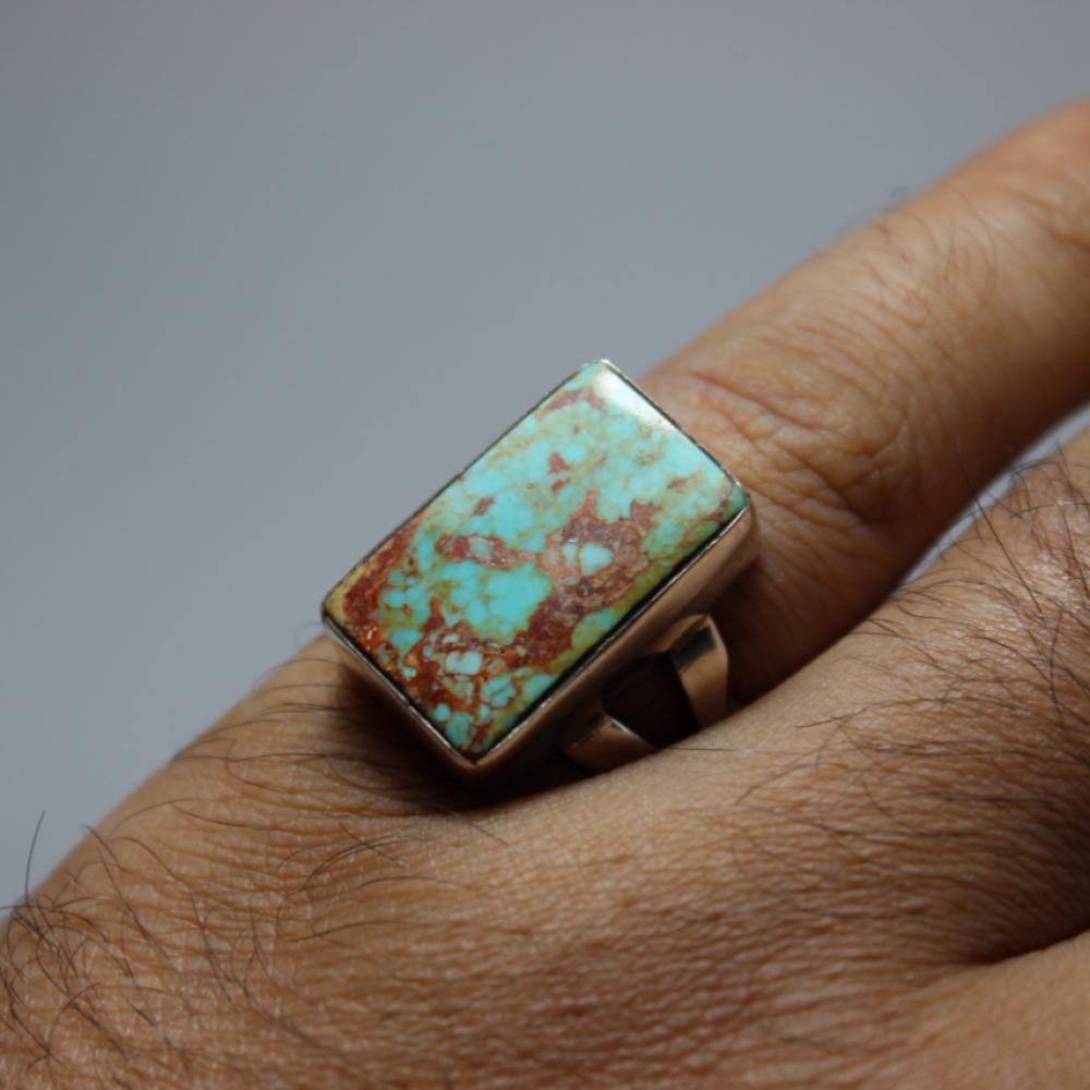 فيروزه نيشابوريه حسينية خضراء قطع مستطيل بعروق ذهبية بصياغة فضة عيار 925.