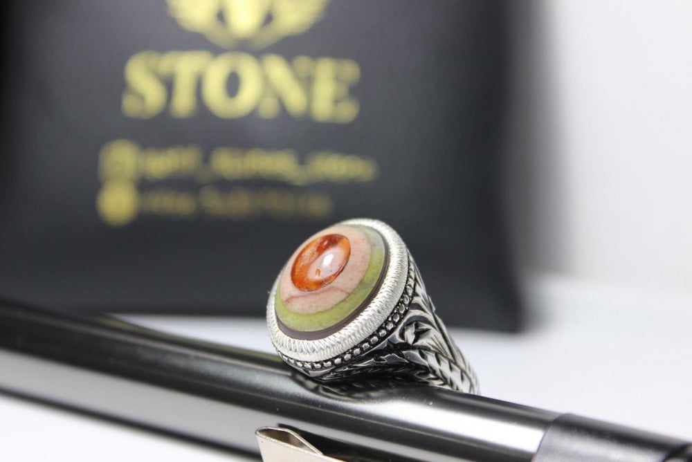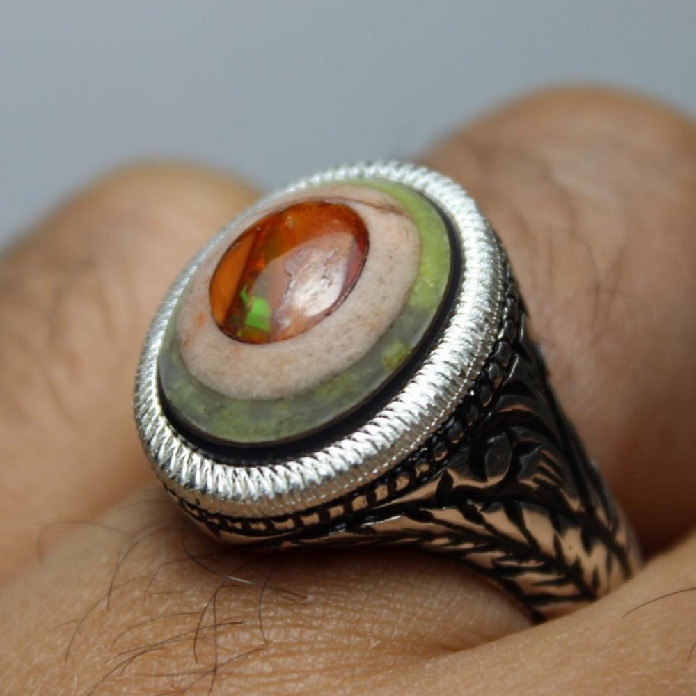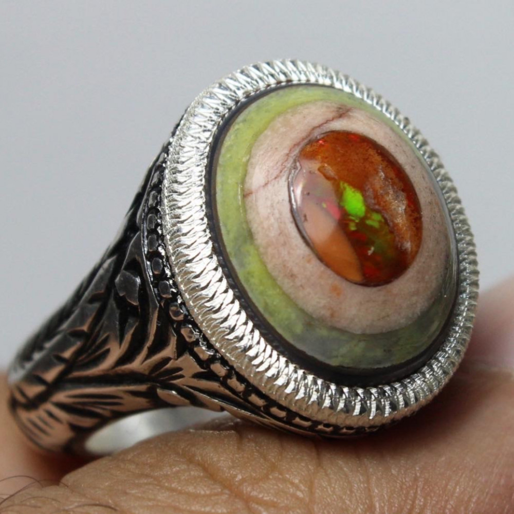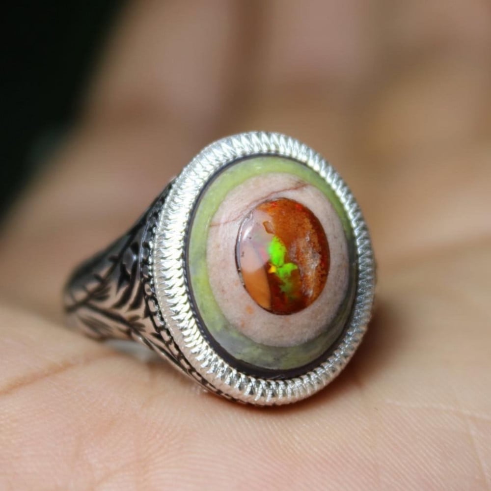 حجر عقيق سليماني يماني مطعم بالأوبال فل فاير طبيعي تبارك الرحمن ❤️🔥 بصياغة المبدع ((غلام)) بختم داخلي برتاش يدوي حفر عميق ما شاء الله
