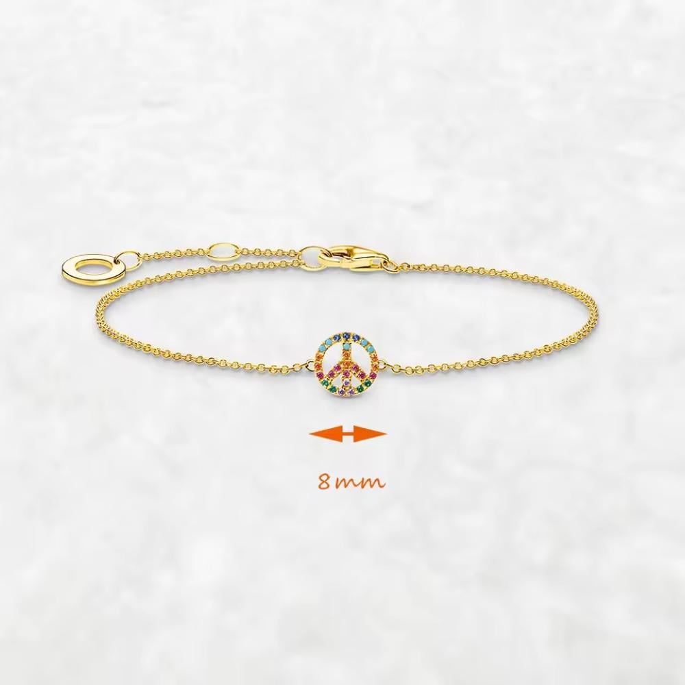تتوسطه أيقونة رمز السلام المرصعة بأحجار الزركون الملون البراقة لتمنحك إشراقة مميزة تعكس روحك الحرة وإطلالتك المميزة.