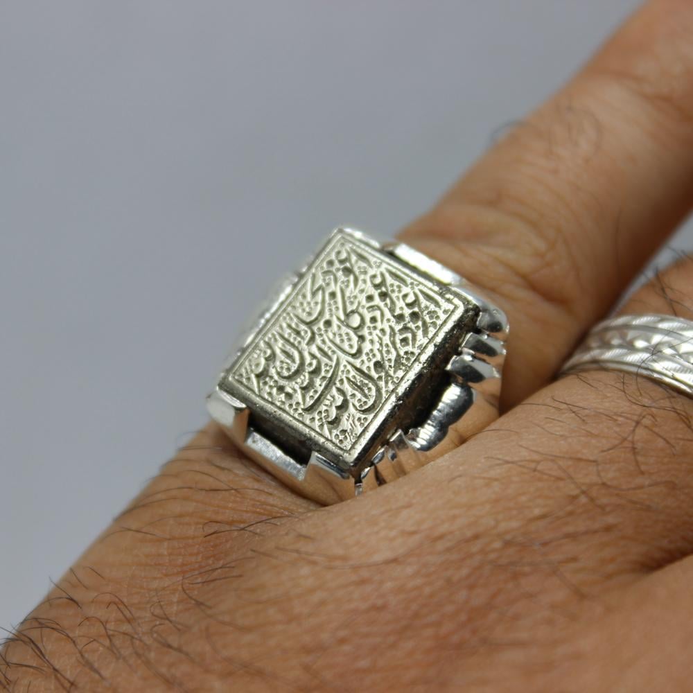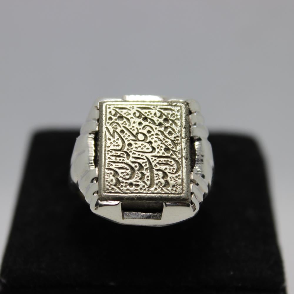 خاتم حديد صيني ( ابيض ) صياغة فضة بحرينية
