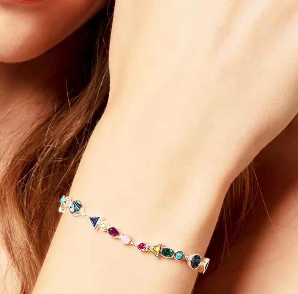 تمتزج الأحجار المتعددة مع بريق الفضة ليشكّل قطعة فنّية نابضة بالحياة، تضفي على معصمك لمسة من الفخامة العصرية والأنوثة الراقية.