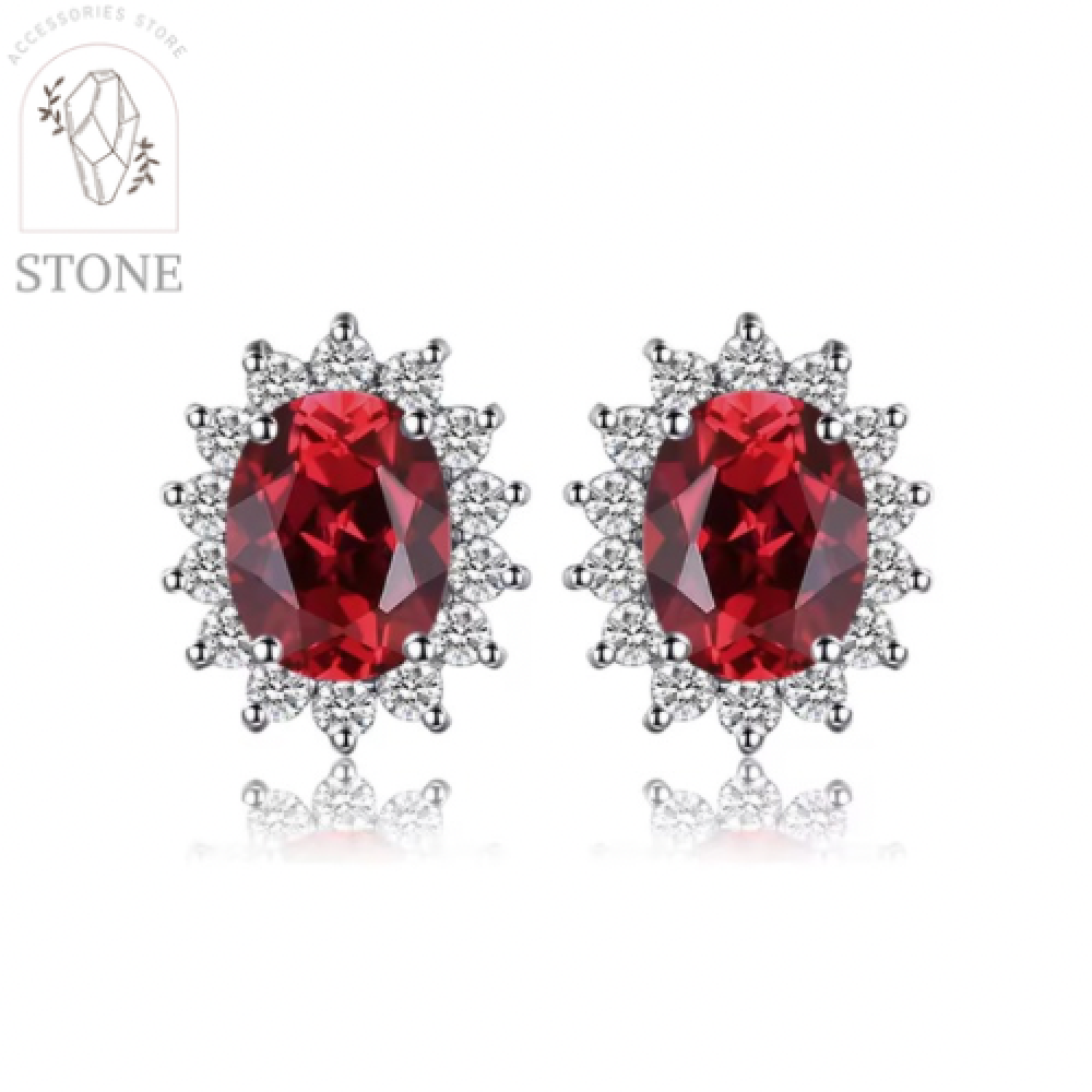 أقراط من الفضة مطعمه بحجر القارنيت الطبيعي مطعمه بالزركون