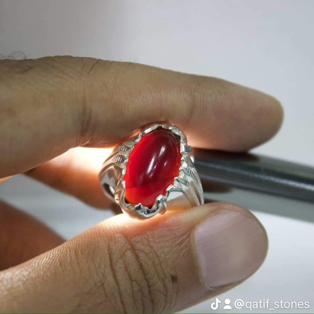 عقيق يماني كرزي زجاجي صياغة ورشة شيرزاد "عيار الفضة 980