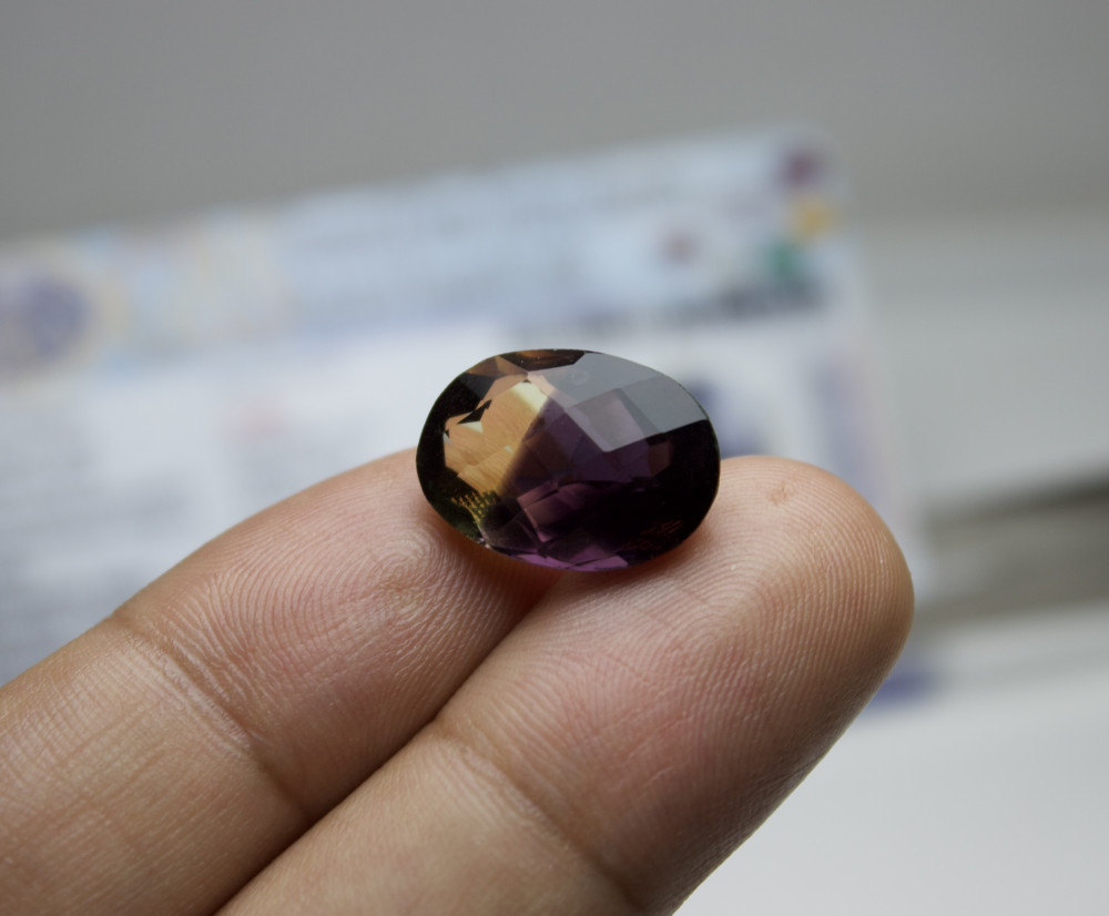 اميترين ثنائي اللون اصفر وبنفسجي طبيعي مع شهادة GBS