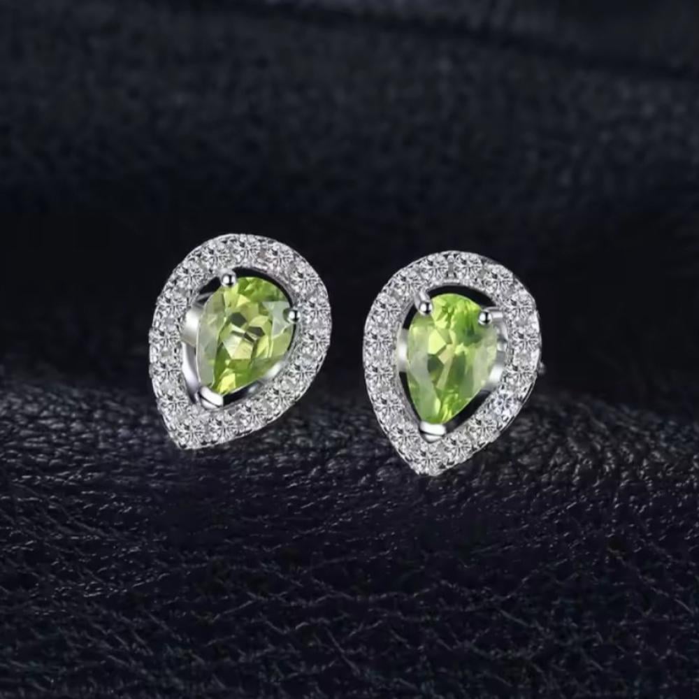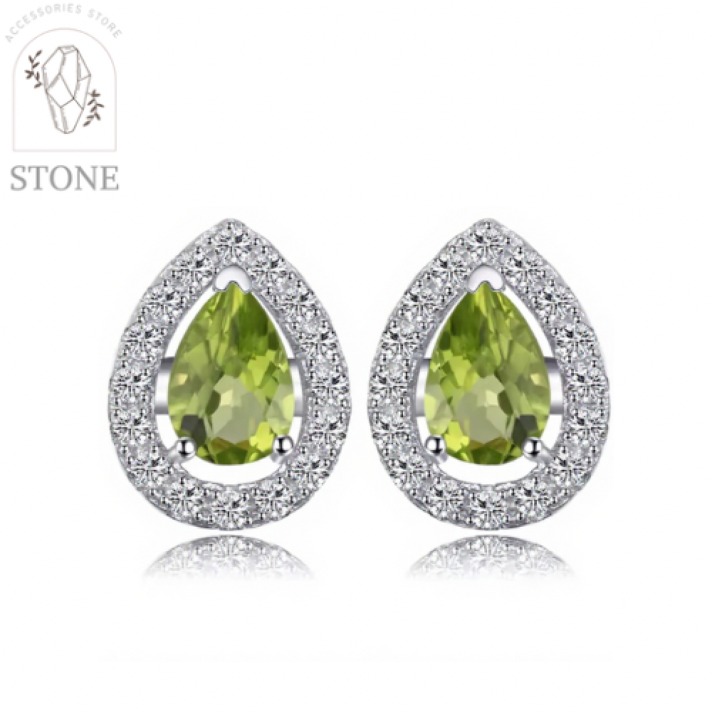 أقراط من الفضة مطعمه بحجر الزبرجد الطبيعي مطعمه بالزركون