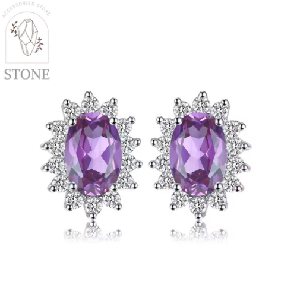 أقراط من الفضة مطعمه بحجر الأمثيست الطبيعي مطعمه بالزركون