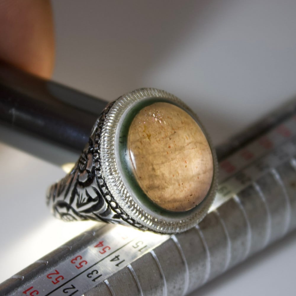 حجر عقيق سليماني يماني مطعم بالأحجار الكريمة فل فاير طبيعي تبارك الرحمن ❤️🔥 بصياغةالمبدع ((غلام)) بختم داخلي برتاش يدوي حفر عميق ما شاء الله