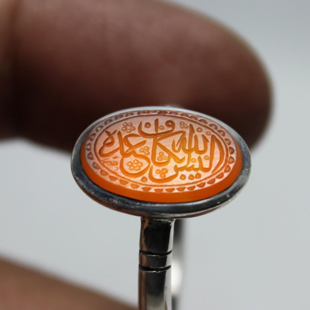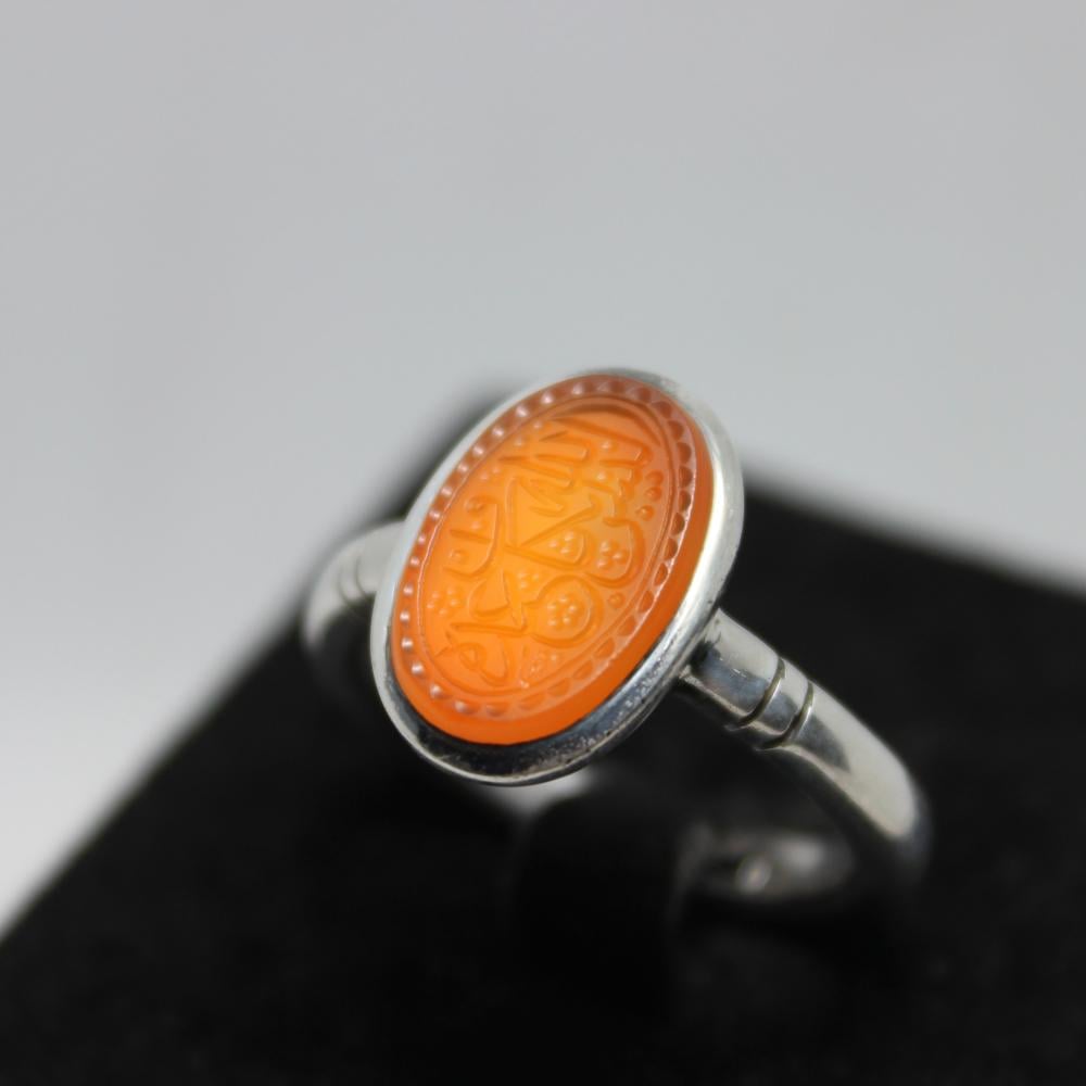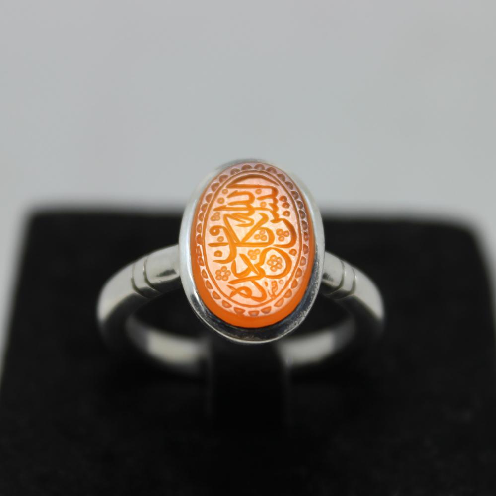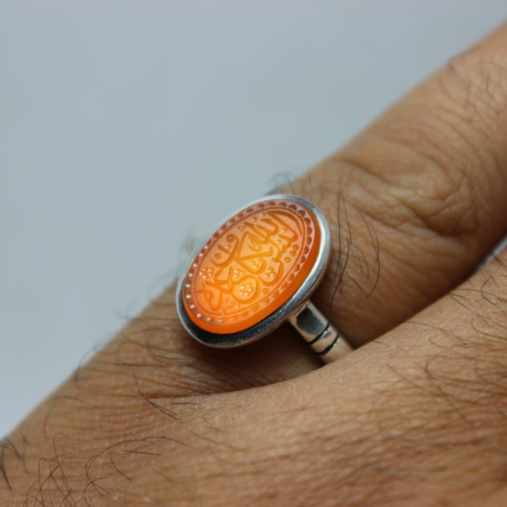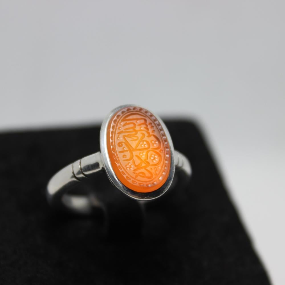 عقيق يماني برتقالي طبيعي، صياغة ملكية فضة عيار 925.