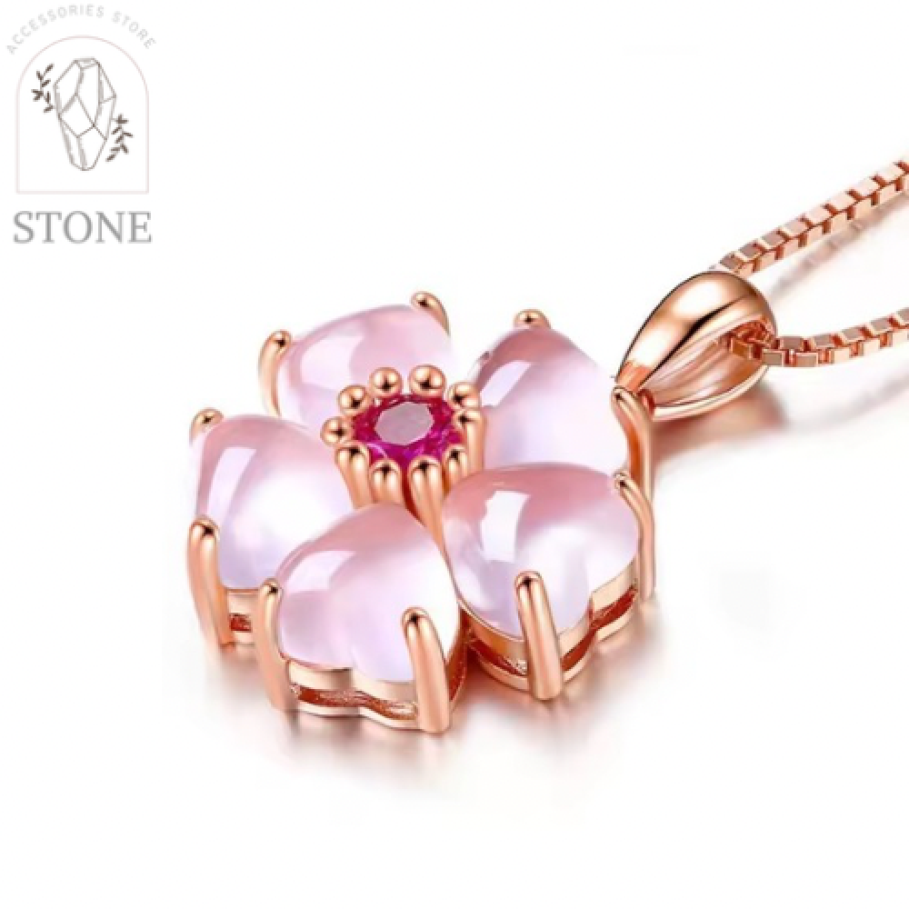 قلادة من الفضة مطعمه بحجر الروز كوارتز الطبيعي مطعمه الياقوت