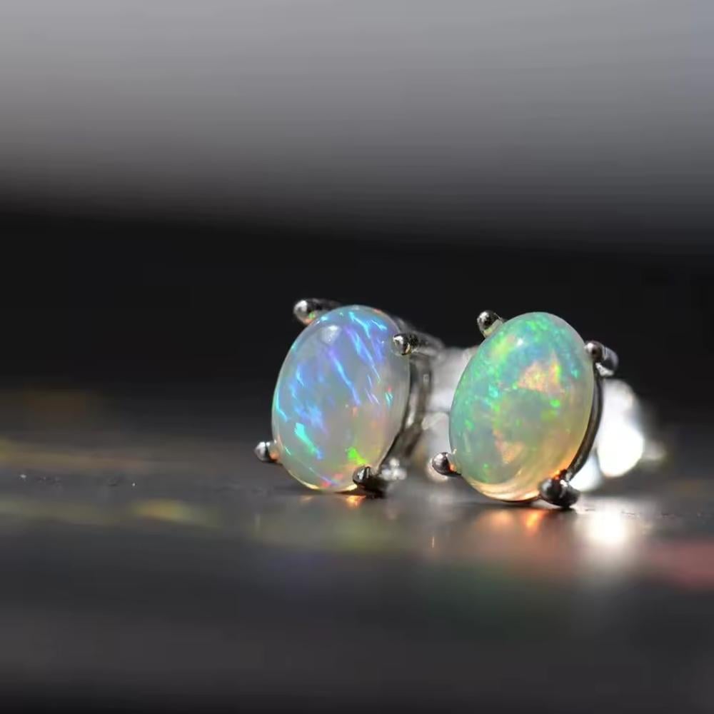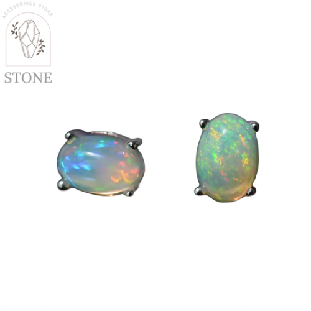أقراط من الفضة مطعمه بحجر الأوبال الطبيعي