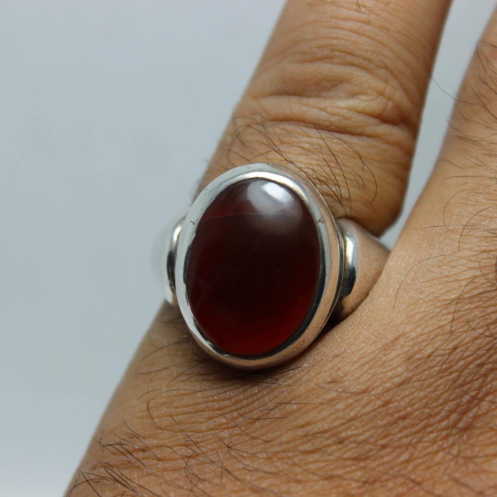 عقيق يماني أحمر رماني طبيعي، صياغة فضة ثقيلة عيار 925.