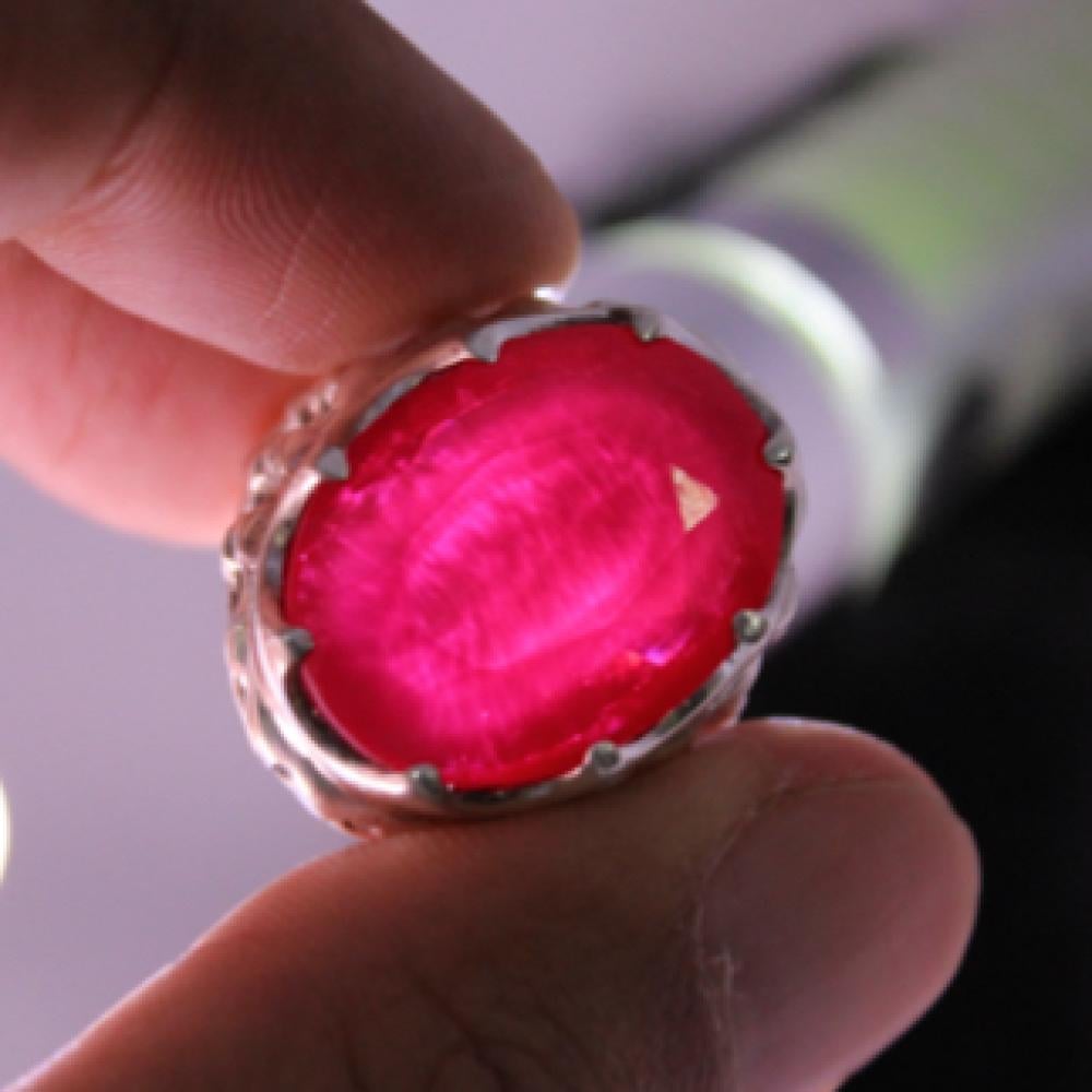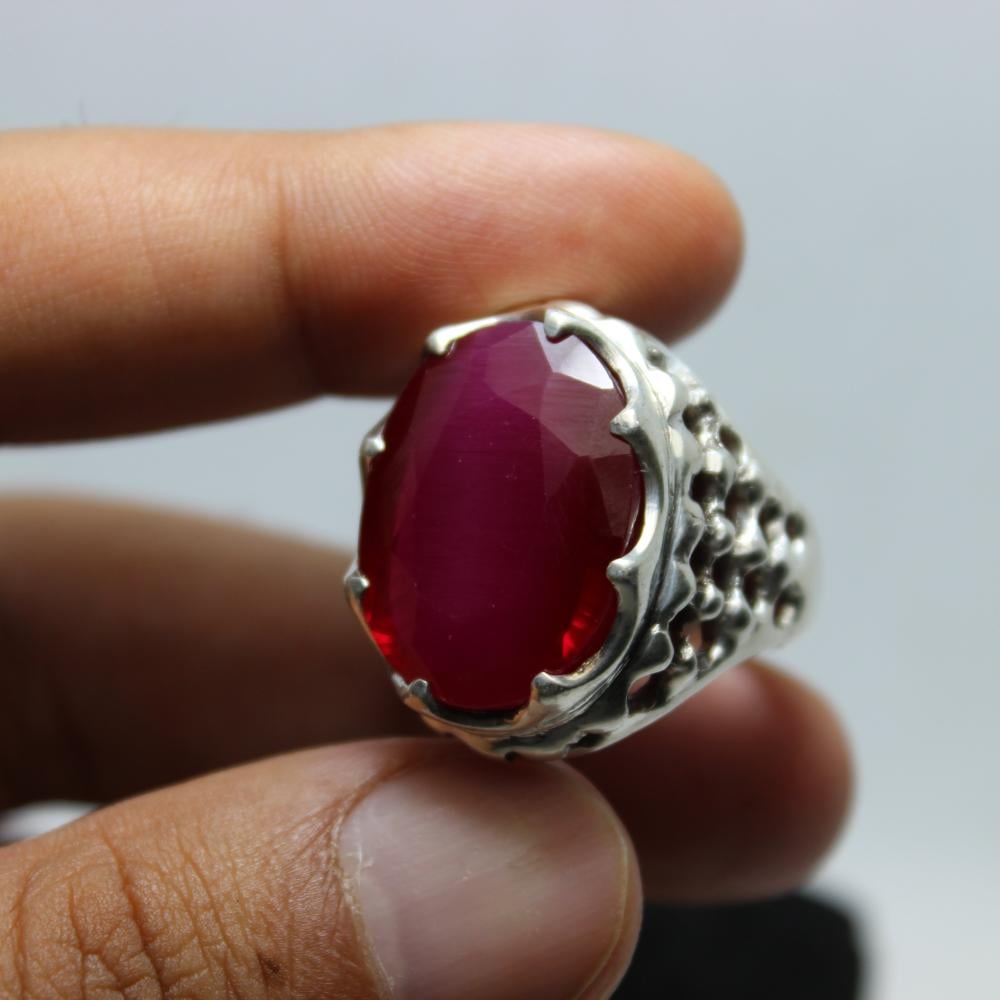 ياقوت تايلندي أحمر طبيعي، صياغة شباك مميزة فضة ثقيلة عيار 925.