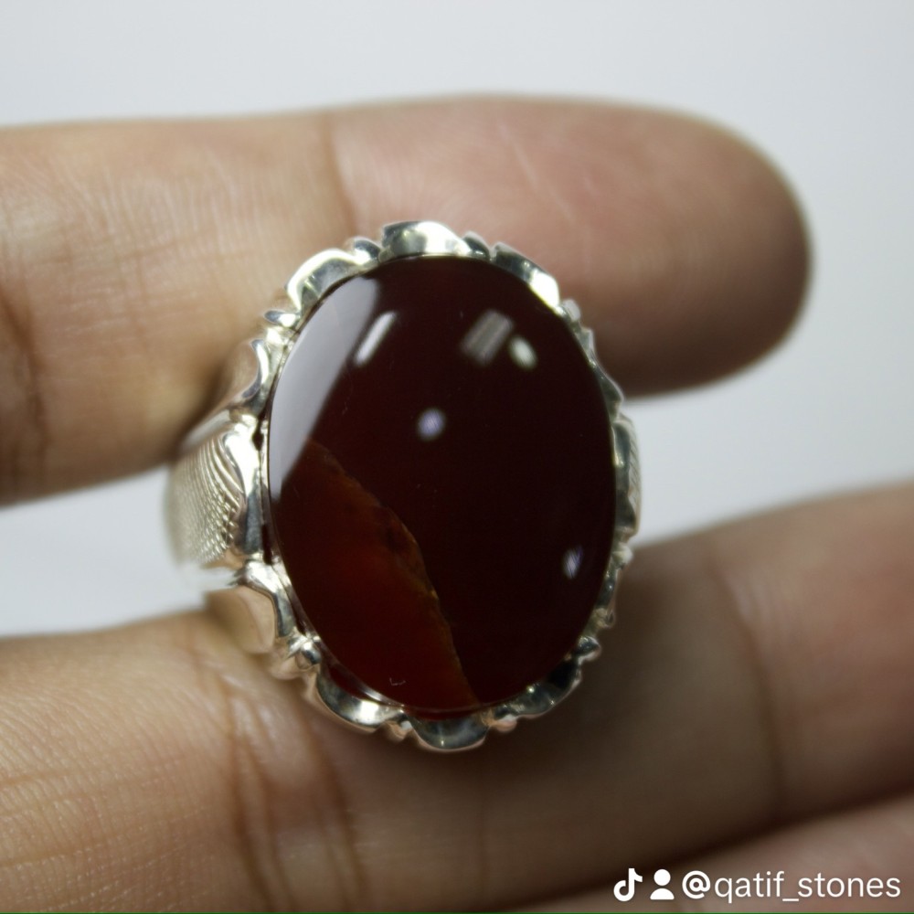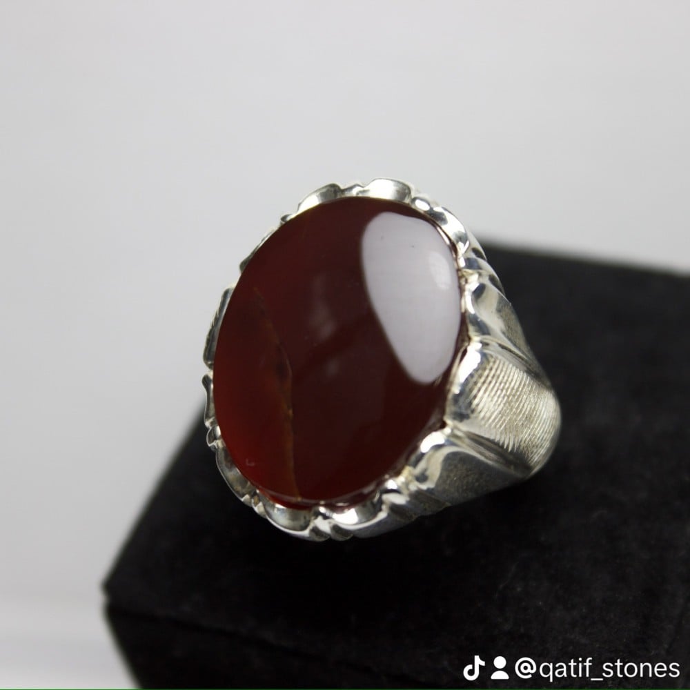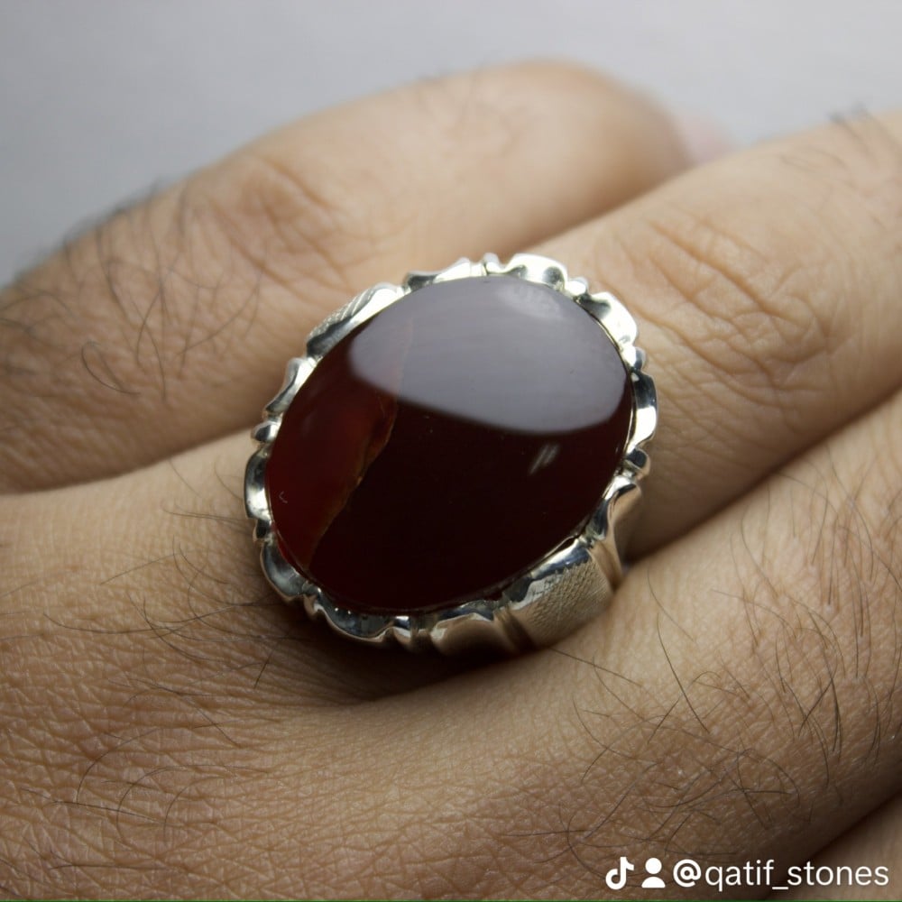 عقيق يماني كرزي مصور بالزعفران خامه توب ماشاءالله صياغة الاستاذ سليم فضة ثقيلة