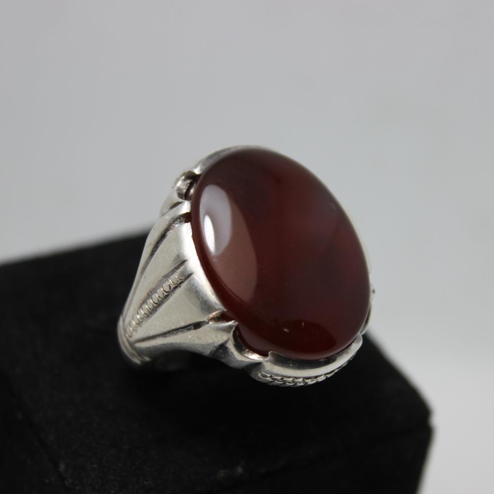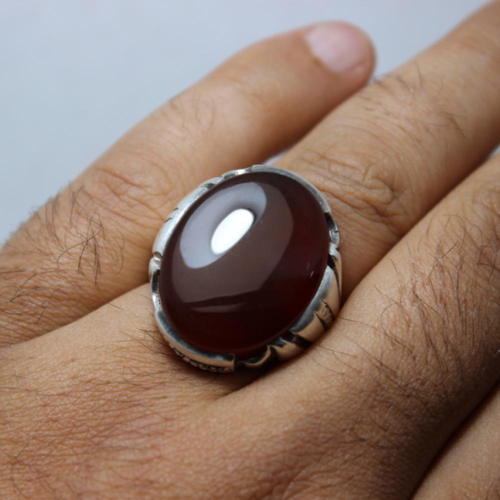 عقيق كرزي يماني مزعفر طبيعي خامة مميزة، صياغة فضة ثقيلة عيار 925 .