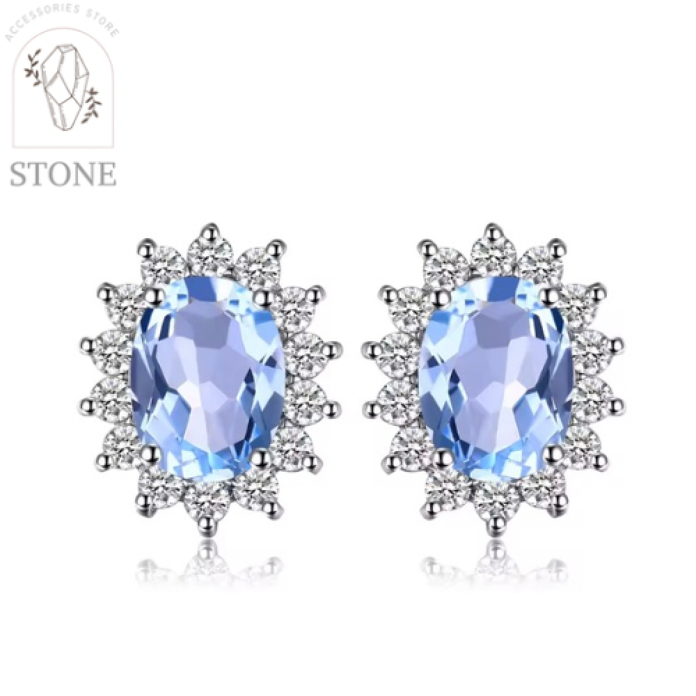أقراط من الفضة مطعمه بحجر التوباز الأزرق الطبيعي مطعمه بالزركون
