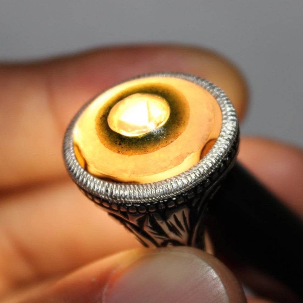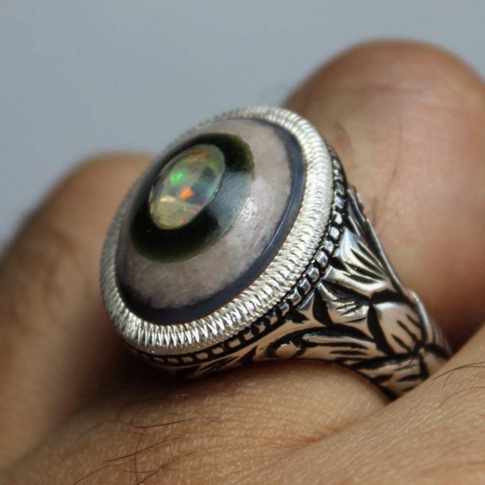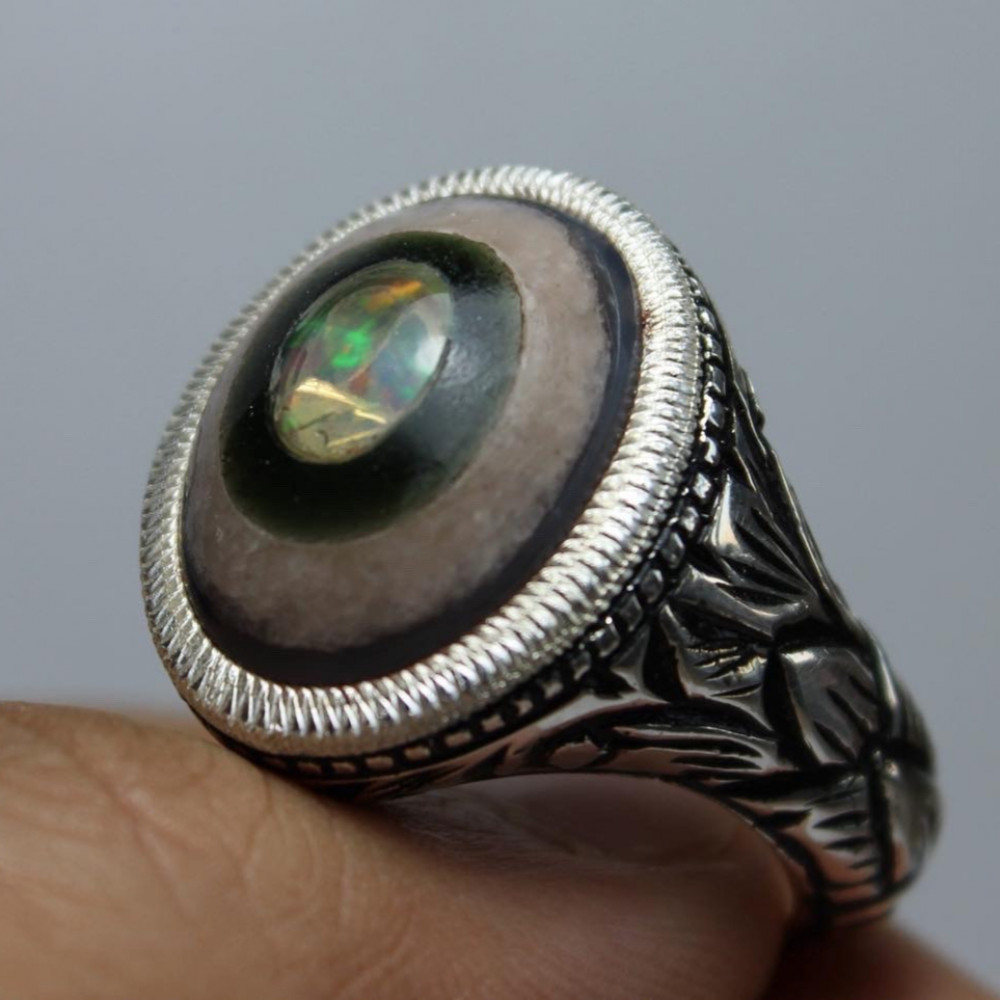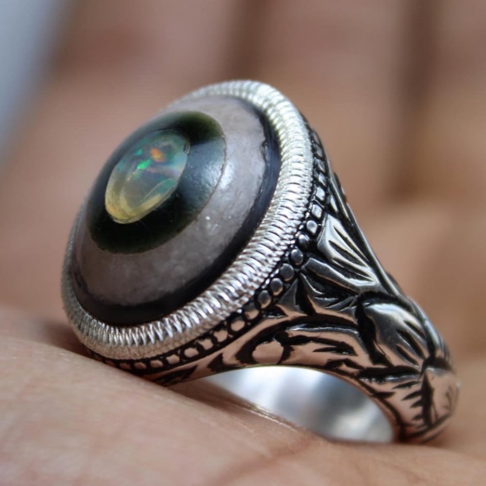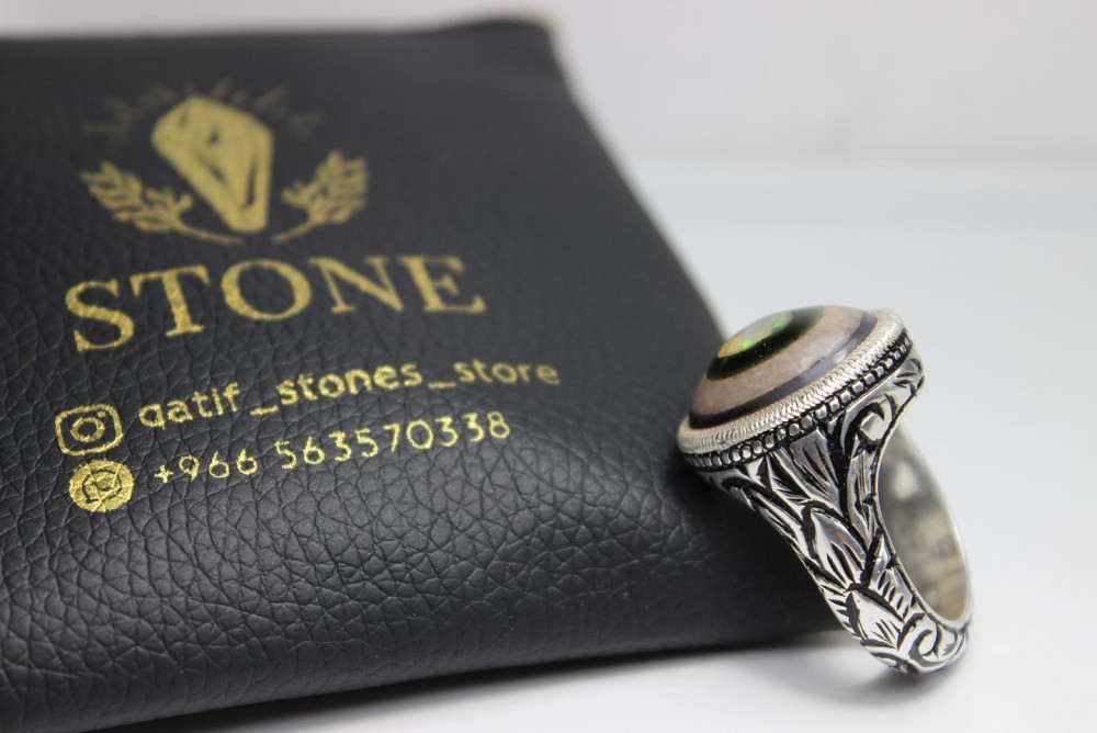 حجر عقيق سليماني يماني مطعم بالأوبال فل فاير طبيعي تبارك الرحمن ❤️🔥 بصياغة المبدع ((غلام)) بختم داخلي برتاش يدوي حفر عميق ما شاء الله