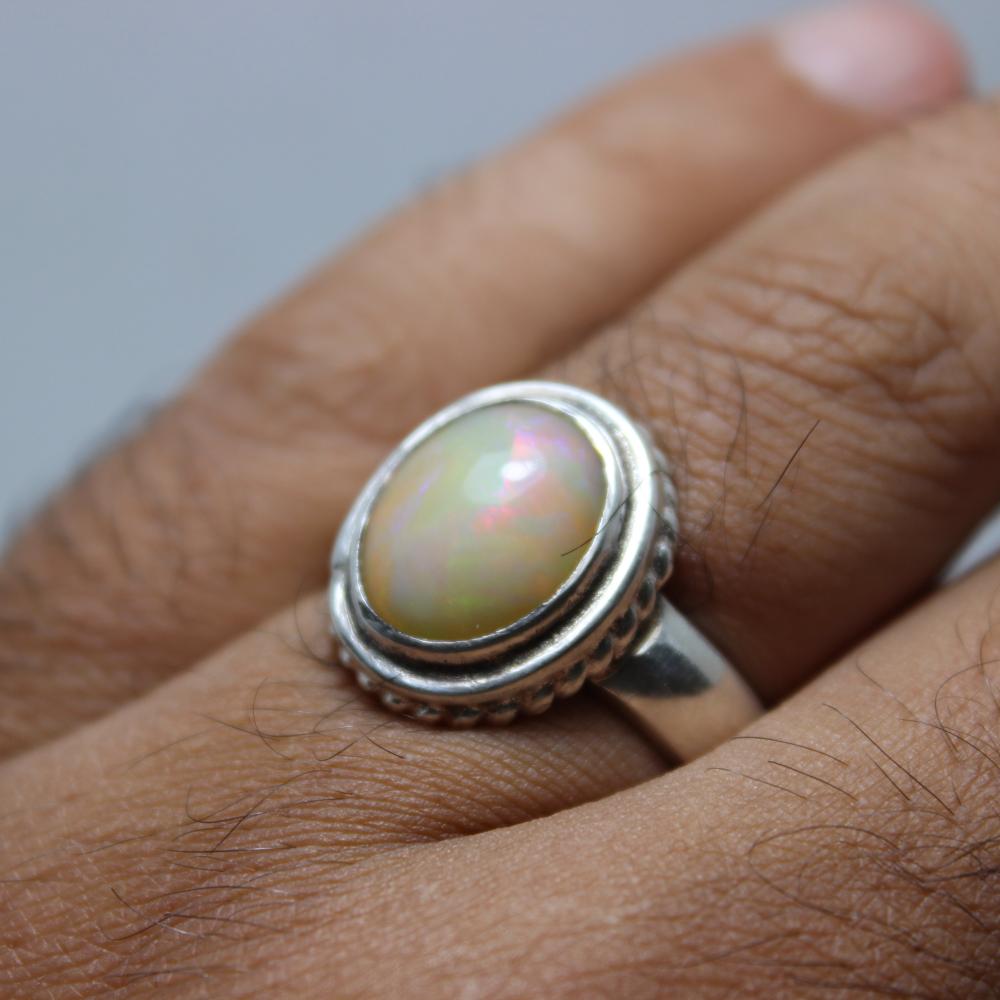 اوبال أبيض أثيوبي فل فاير طبيعي، صياغة فضة عيار 925 .