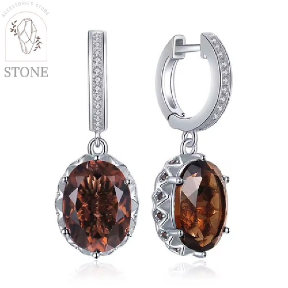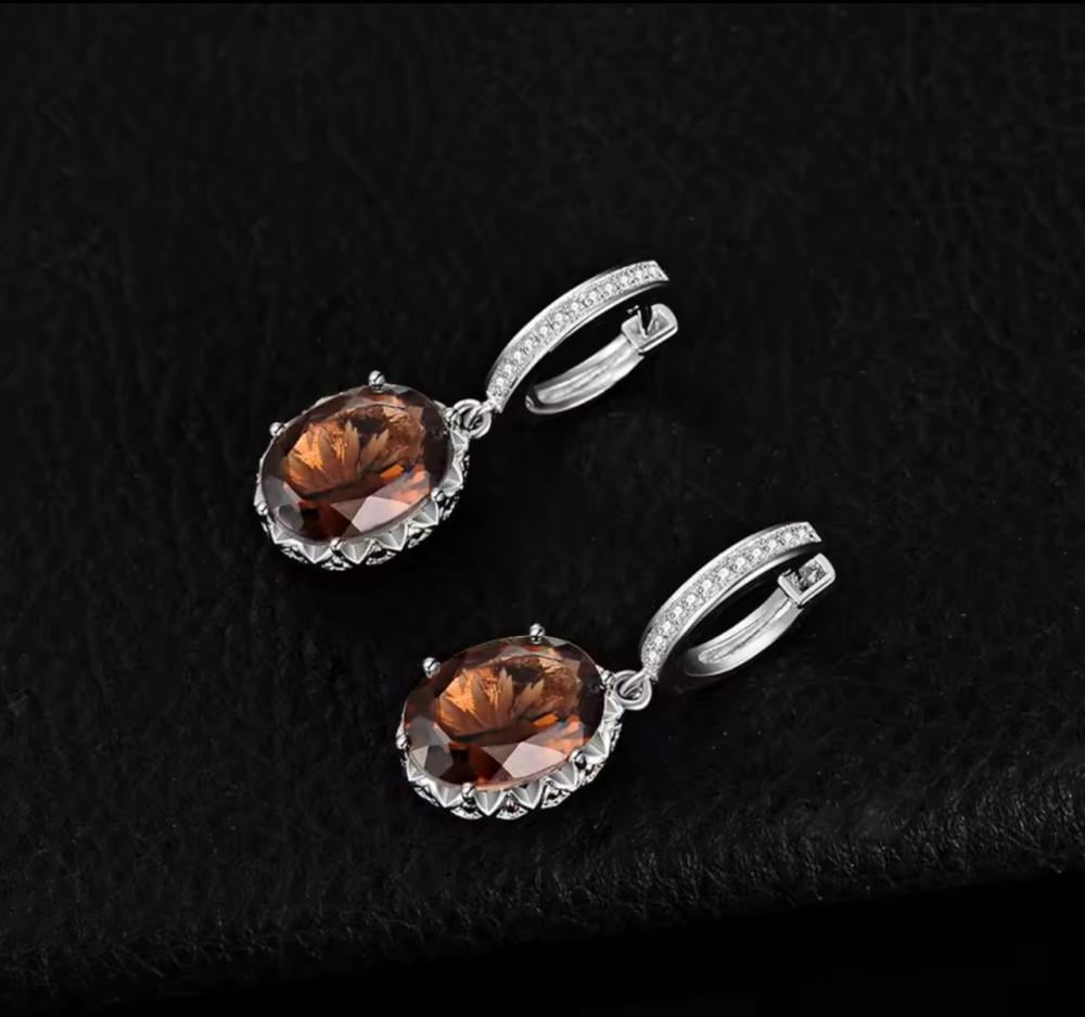 أقراط من الفضة مطعمه بحجر سموكي كوارتز الطبيعي