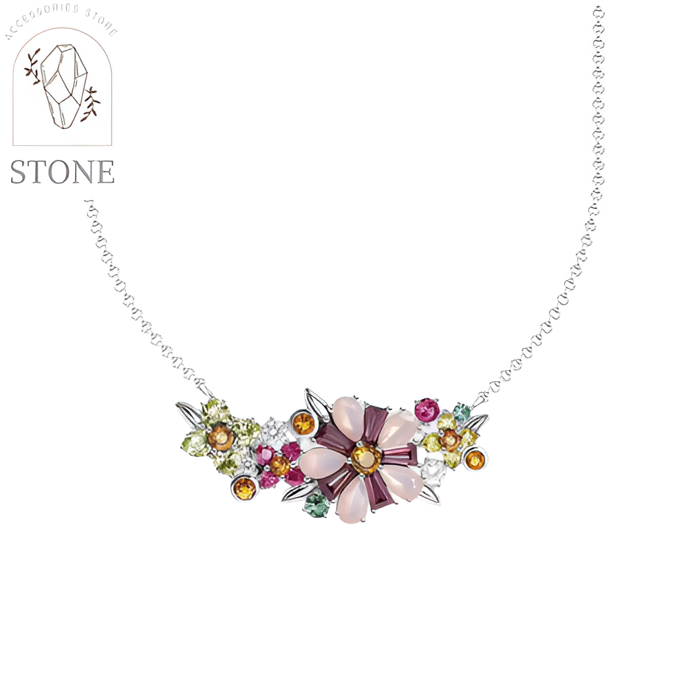 قلادة أنيقه من الفضة الاسترلينية بتصميم زهرة متألقة مرصعة بأحجار زركون ملونة تمنحك إشراقة مميزة ولمسة عصرية فاخرة. قطعة مثالية لتكملي بها أناقتك اليومية أو لمناسباتك الخاصة بإطلالة تنبض بالجمال.