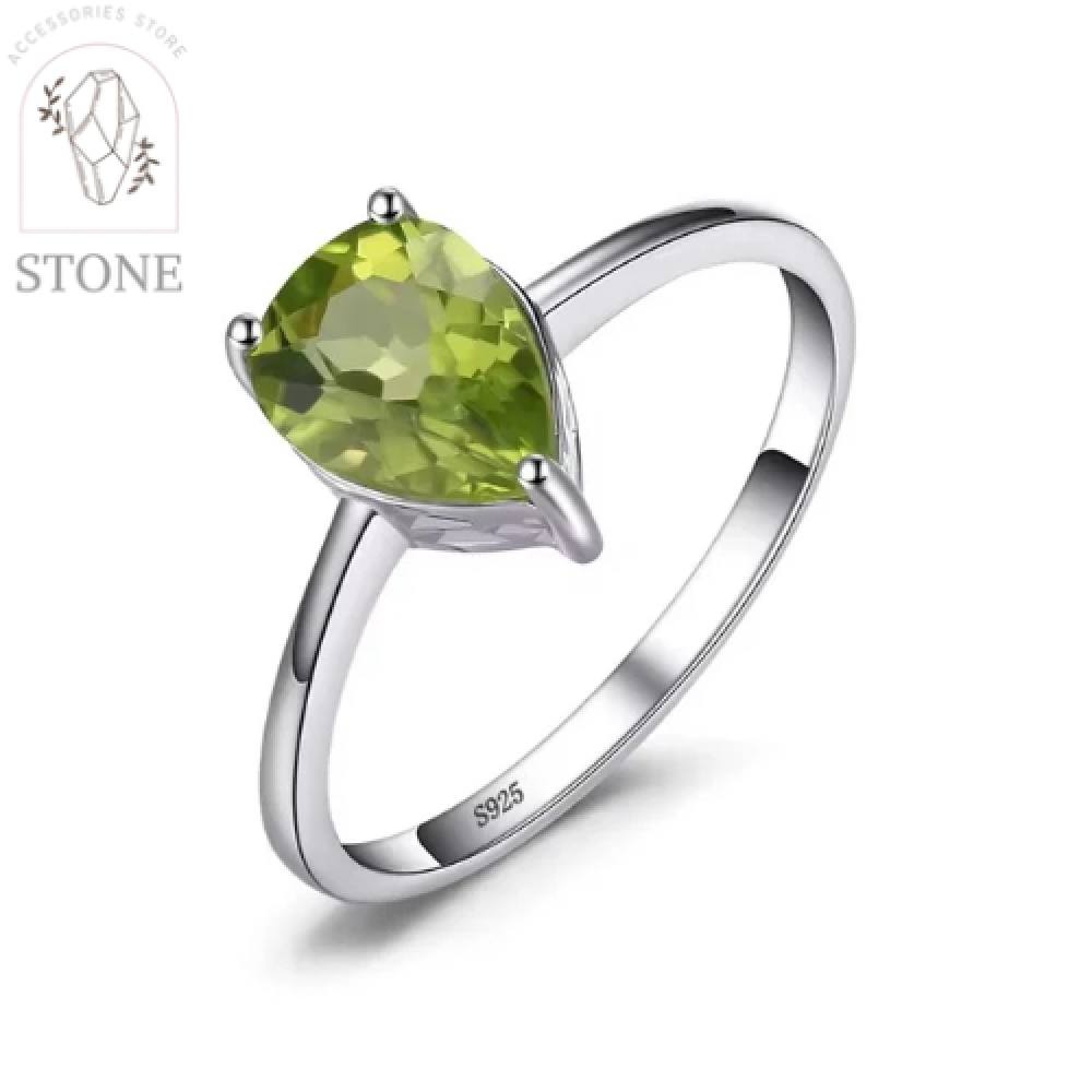 خاتم من الفضة مطعم بحجر الزبرجد الطبيعي