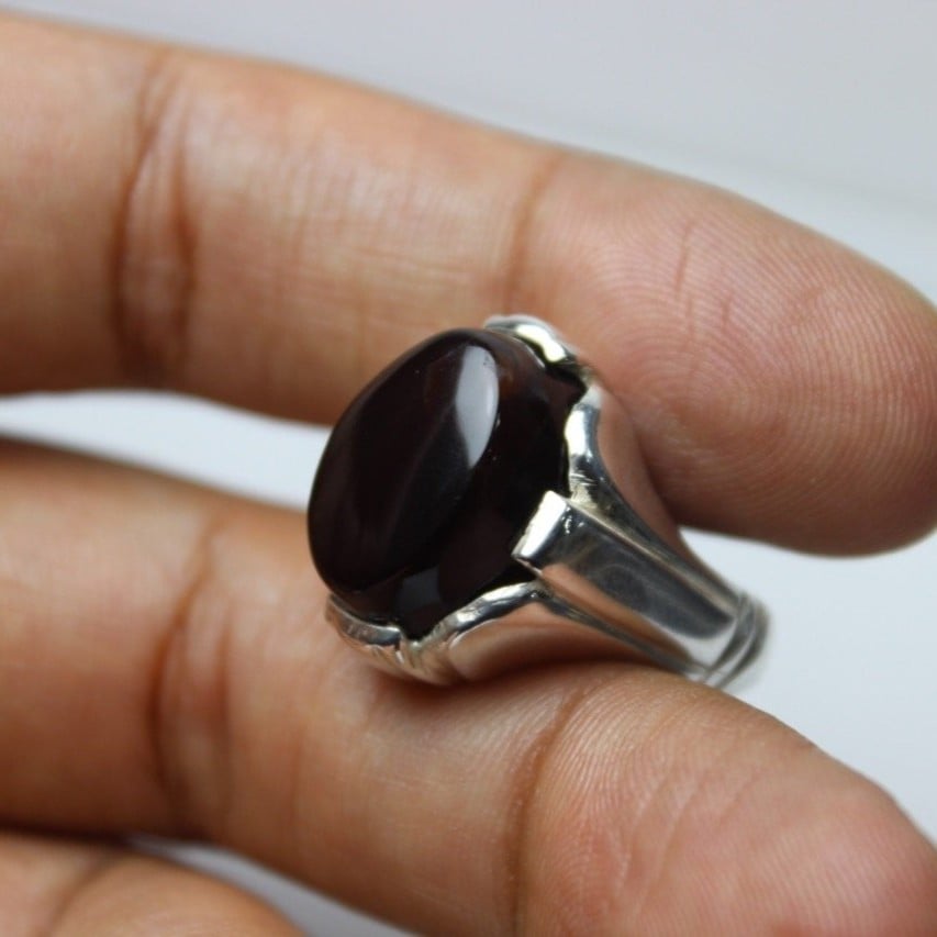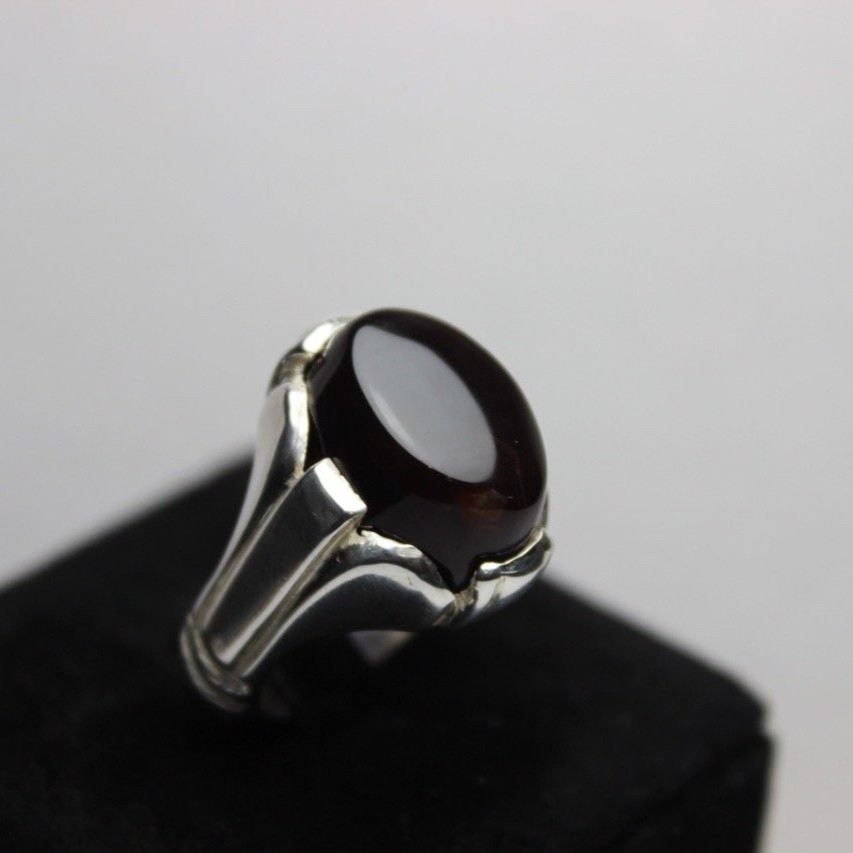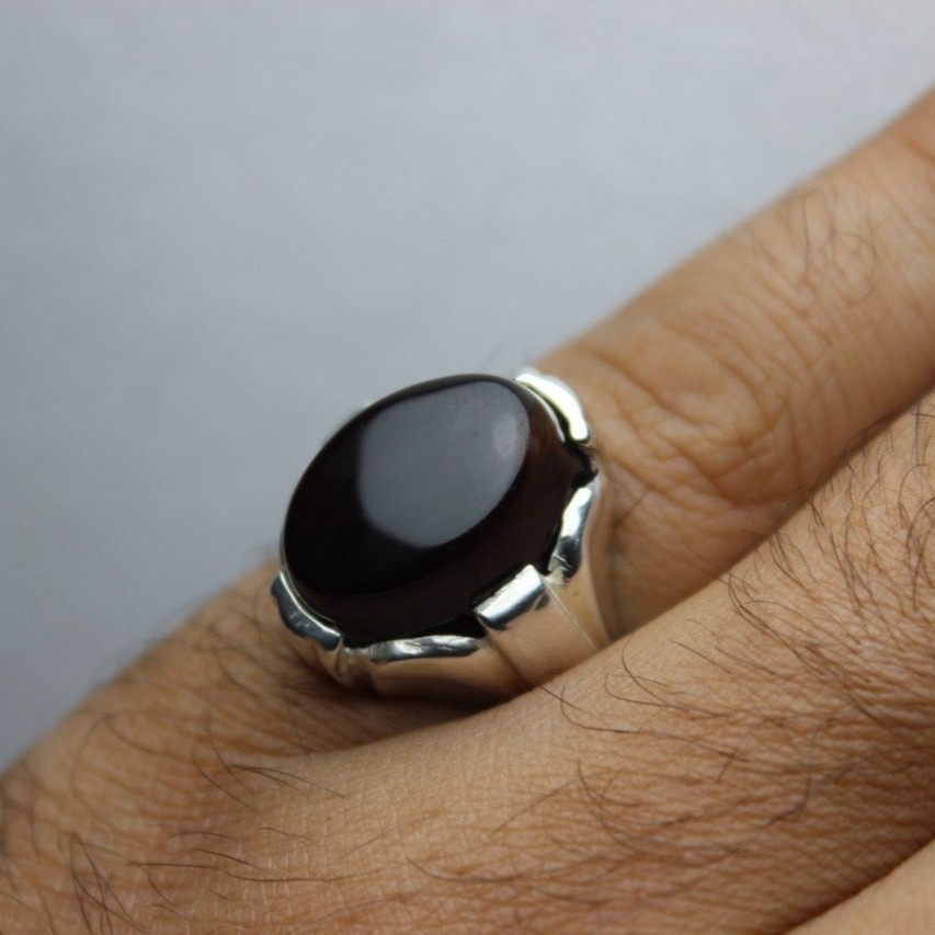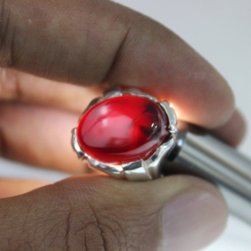 عقيق يماني كرز الكرز زجاجي بطن أحمر بضربة زعفران تبارك الرحمن صياغة ورشة شيرزاد"عيار الفضة 980"