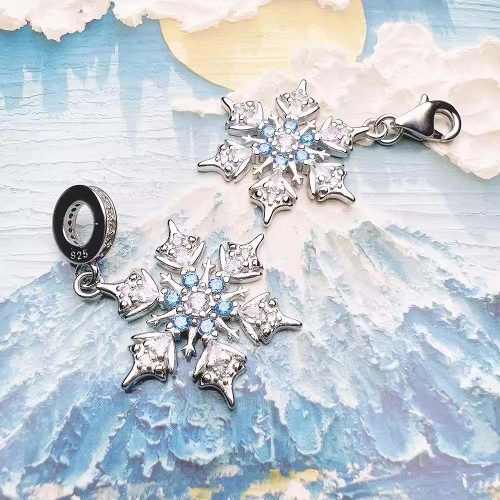 استمتع بسحر الشتاء مع هذه قلادة ندفة الثلج الفضية الإسترلينية المذهلة، وهي قطعة خالدة تجسد جمال ندفات الثلج. صُنعت هذه القلادة من الفضة الإسترلينية 925 عالية الجودة، وتتميز بتصميم ندفة ثلج معقدة مزينة بـ أحجار الزركونيا الزرقاء المكعبة اللامعة ولمسات زرقاء رقيقة، مما يخلق تأثيرًا جليديًا مبهرًا.