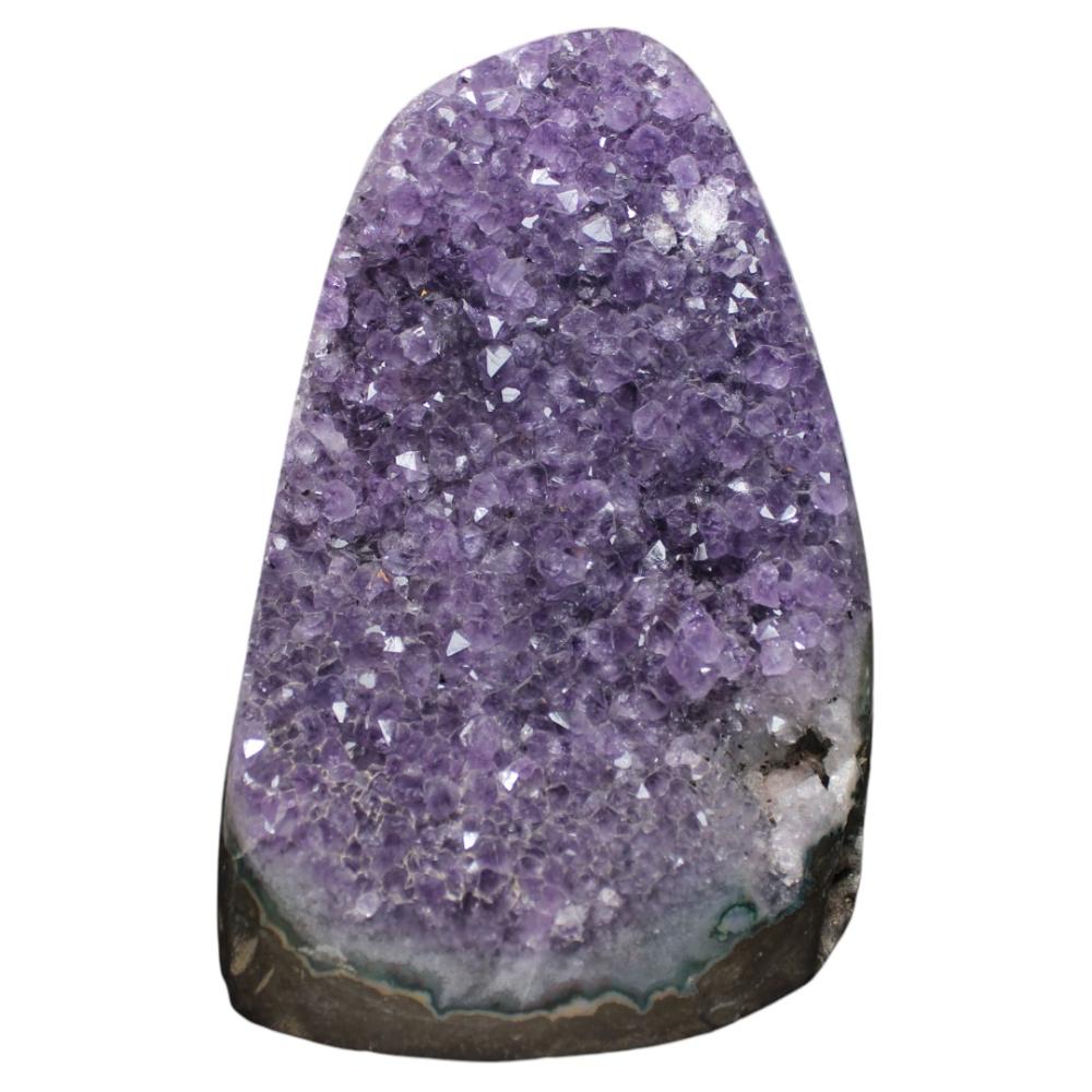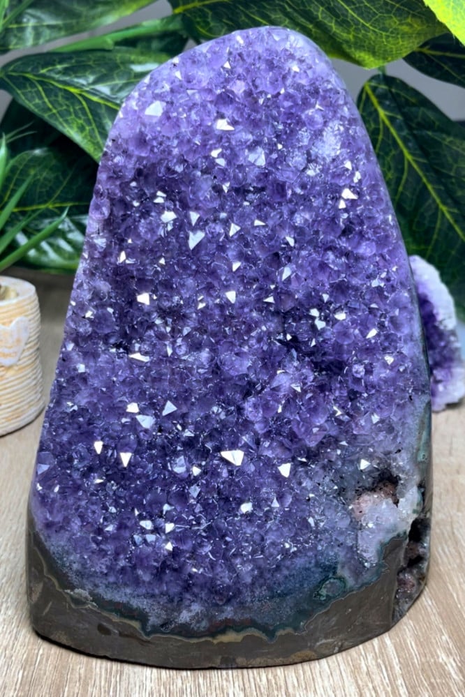 - المظهر: يتميز حجر الجمشت دروزي بعدد لا يحصى من نقاط الكريستال الصغيرة، مما يخلق سطحًا لامعًا يتلاعب بالضوء. اللون الأرجواني الغني يرمز إلى الروحانية والحدس.